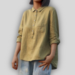 גלה את חולצת כפתורים, פריט מרכזי בקולקציה שלנו חולצות אלגנטיות לסתיו, שמשלבת פשטות נצחית עם קלילות מודרנית. הצווארון הקלאסי שלה והקווים הנקיים מציעים סילואט נינוח שמקרין אלגנטיות ונוחות. עשויה מתערובת קלילה של פשתן וכותנה, היא אידיאלית לימים חמים ועדיין נשארת מספיק אלגנטית לכל האירועים.