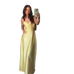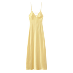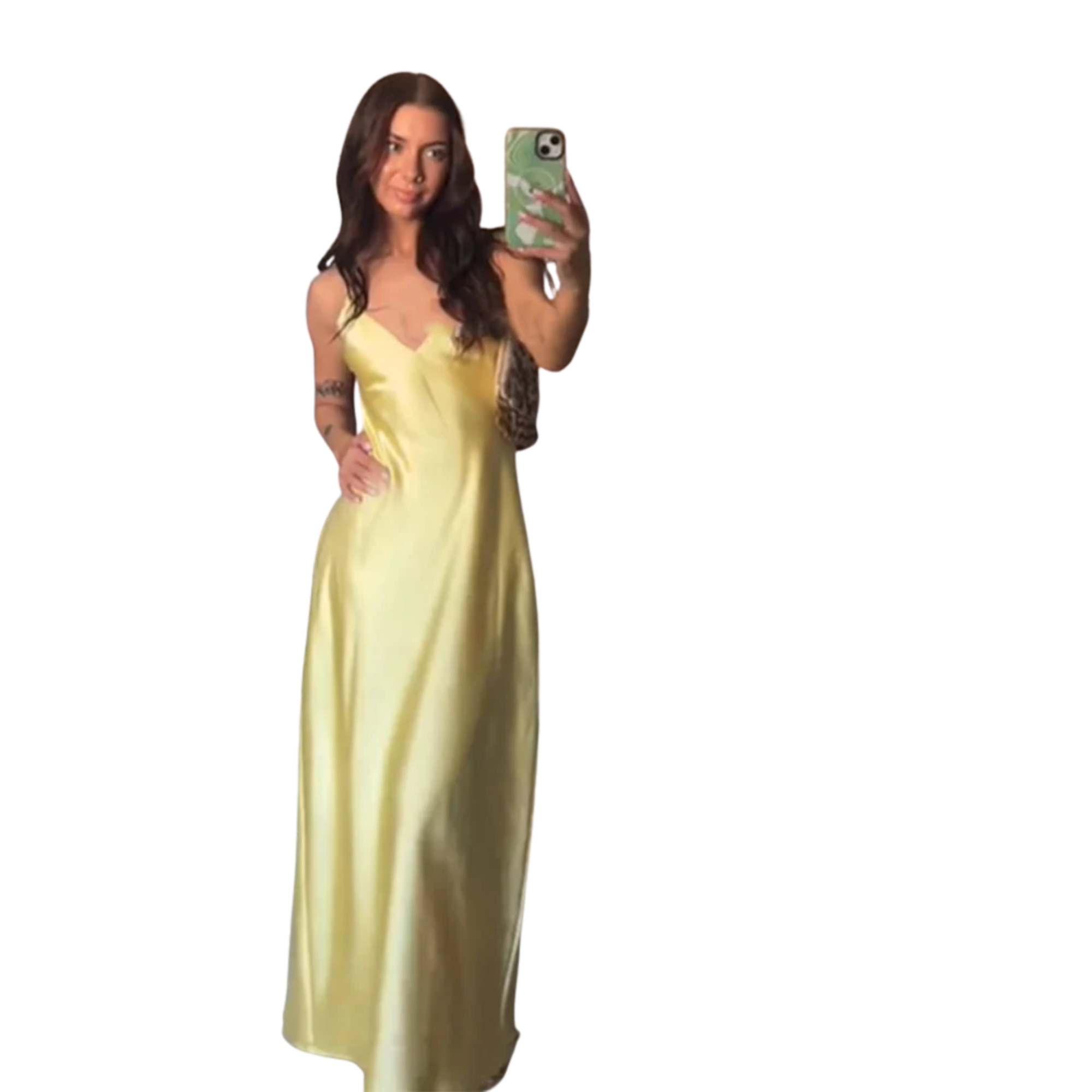 סטייל קיצי אלגנטי – עיצוב צמוד באורך מלא עם מחשוף V ורצועות דקות מעניק מראה קלאסי ומעודן, מושלם לאירועי אביב וקיץ.