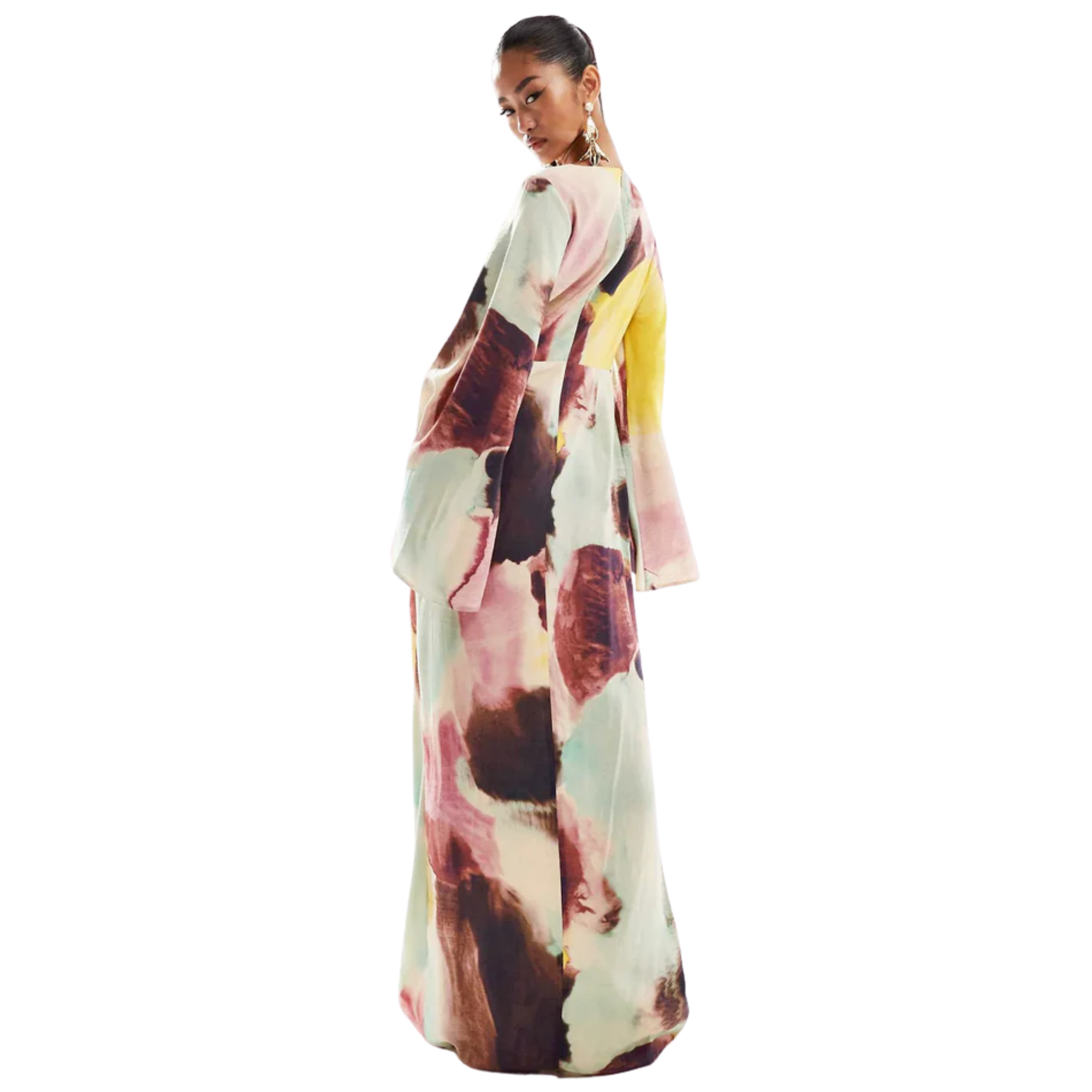 שמלת מקסי מודפס בצבעי מים אבסטרםקטיי
