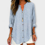 טופ לוצידה עם צווארון V ודוגמת פסים אלגנטית