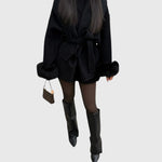 מעיל לינה משלב חום ואלגנטיות בעיצוב מחמיא עם חגורה רכה ושרוולי פרווה יוקרתיים.