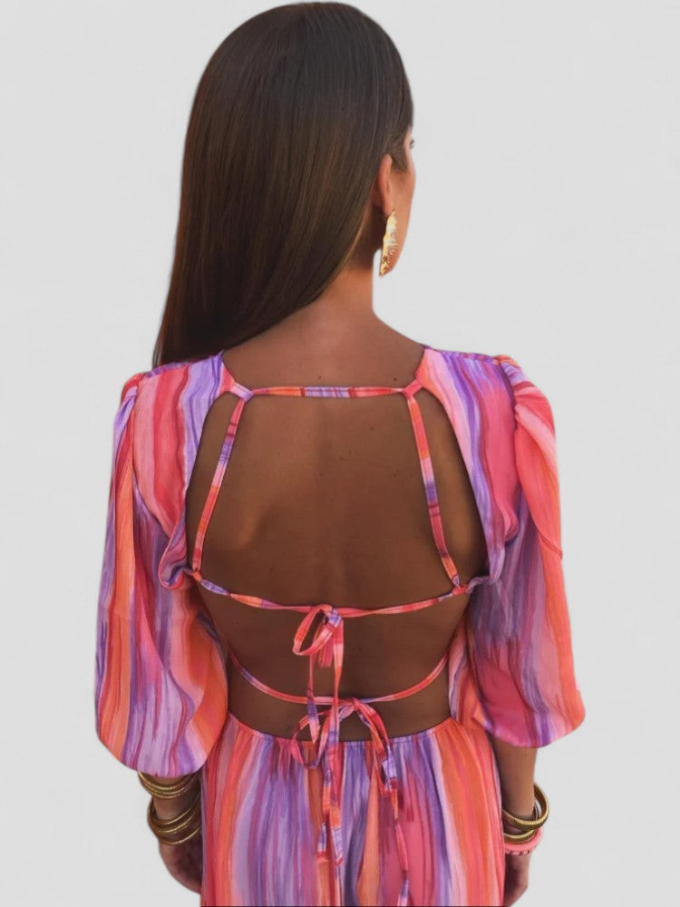 מציגים את שמלת פלאומה אלגנטית עם חיתוכים — יצירת מופת של נשיות מודרנית. נועדה להדגיש את האלגנטיות שלך, שמלה זו מתהדרת בסילואט מרהיב עם קווים מעודנים וקסם קיץ שאין להכחיש.