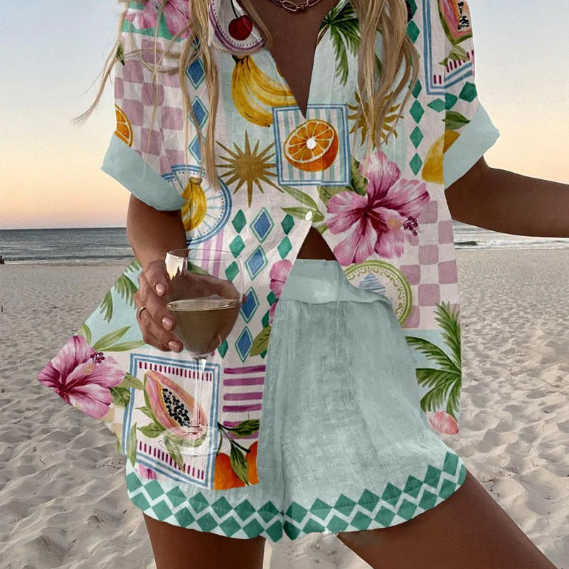 מאבין™ | חליפת לייקרה קצרה עם הדפס פירות