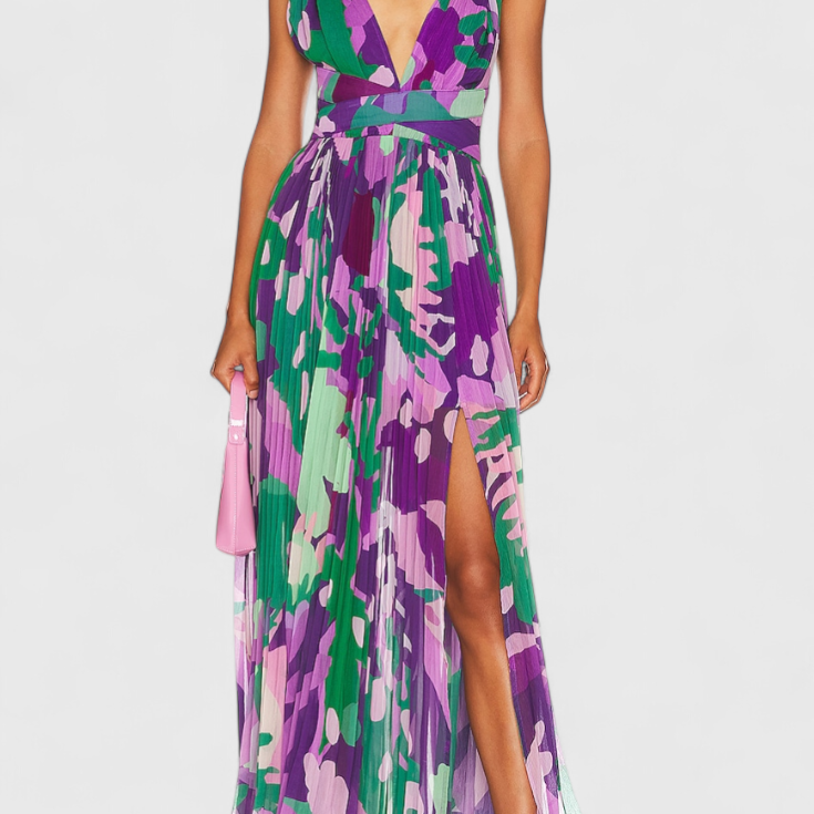 סמלת ססיל ארוכה מקופלת עם הדפס אקוורלי וגב פתוח