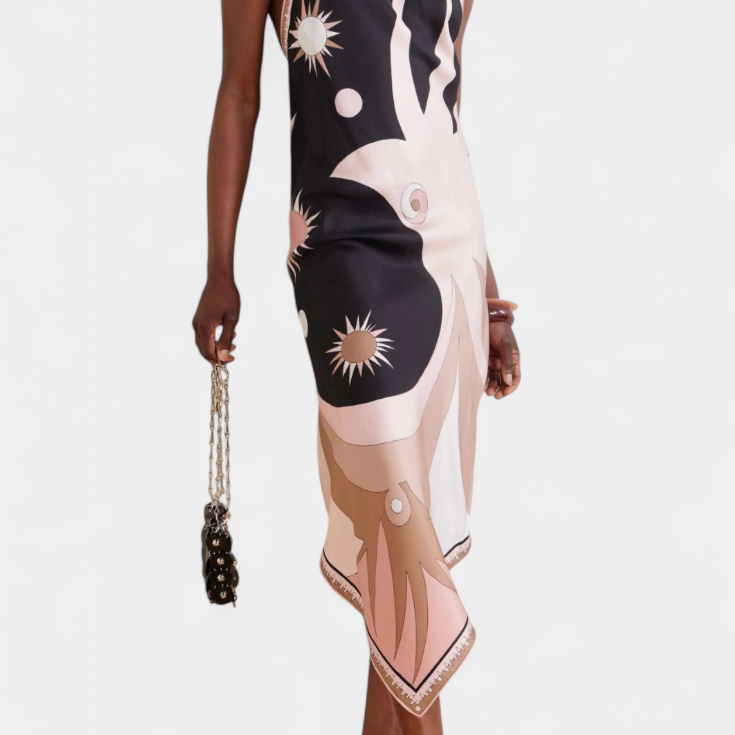 סמלת רוזנדה עם גב פתוח ודפוס אבסטרקטי