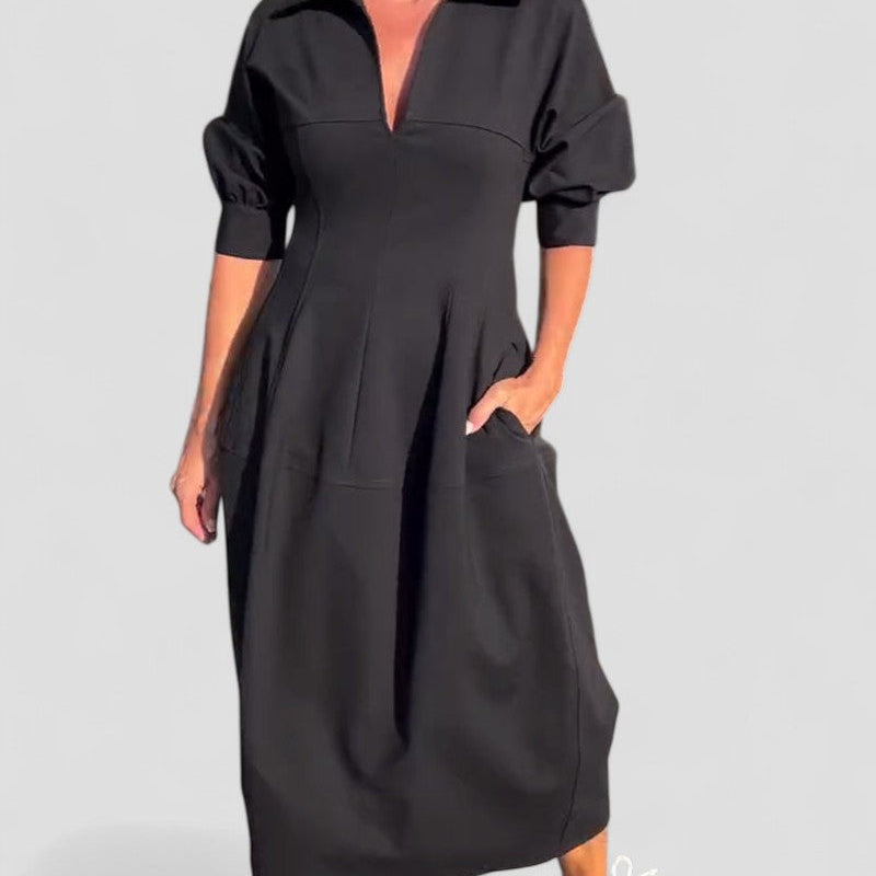 קלרה – שמלת מקסי אלגנטית מתחרה עם צווארון וי