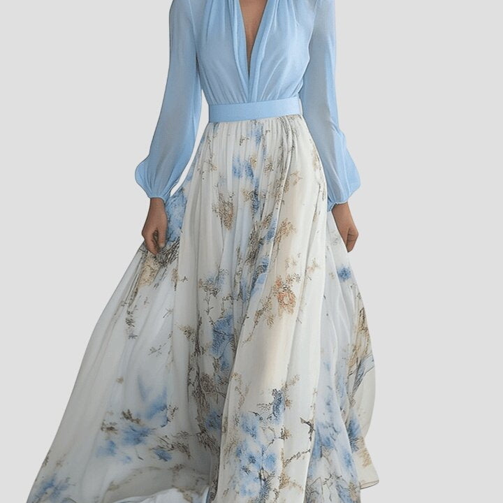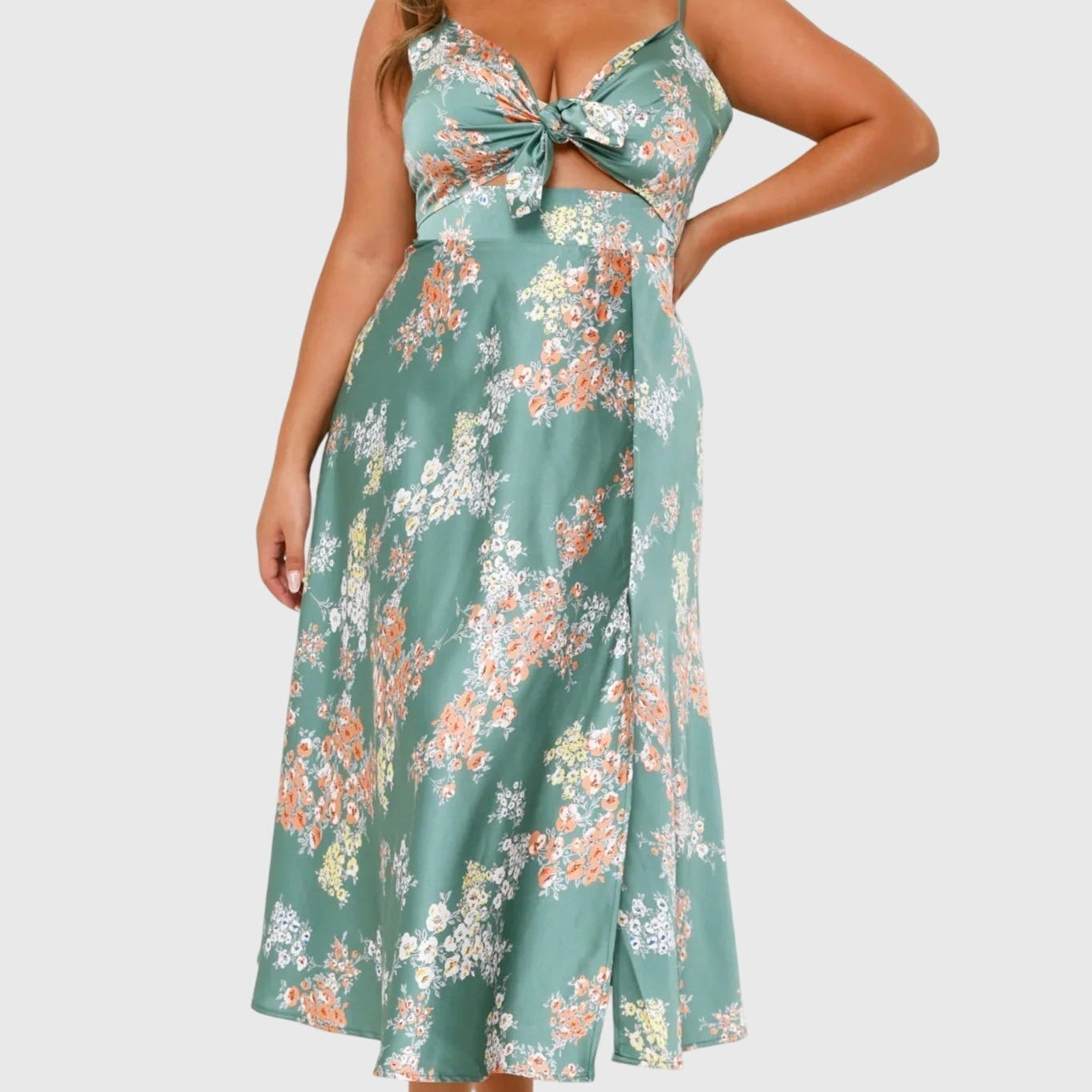 שמלות מקסי קפריס עם הדפס פרחים וסקופ הולטר