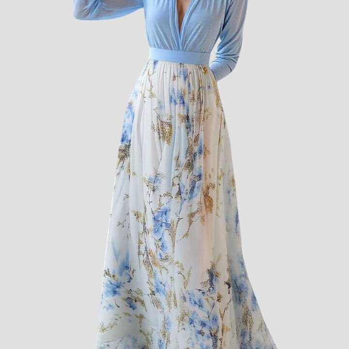 שמלות כריסנטה ארוכות מודפסות עם גלים רב-צבעוניים ושרוולים ארוכים