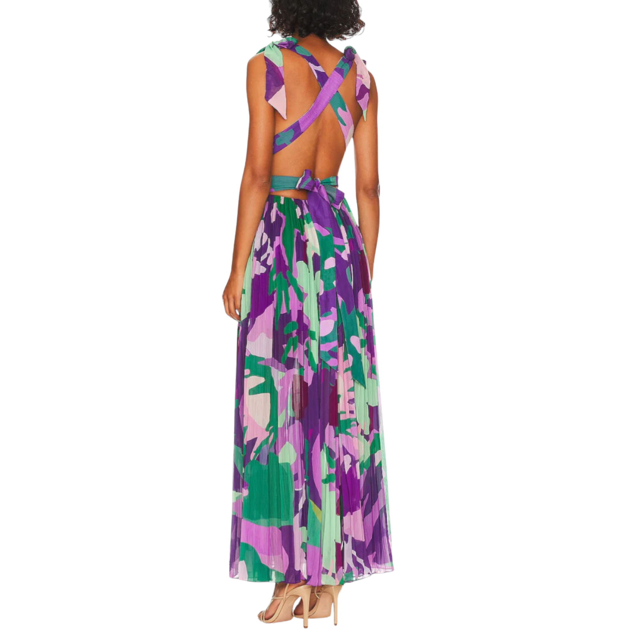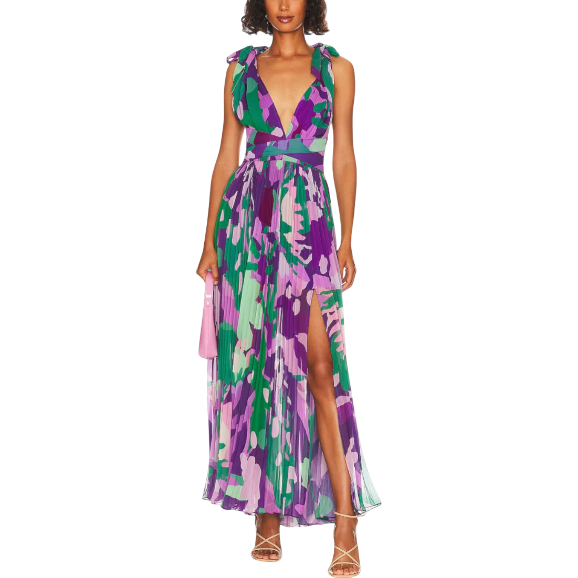 שמלת אננה צבעונית ללא שרוולים עם מחשוף בצורת V
