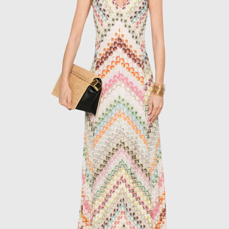שמלת אגוסטינה ארוכה עם תחרה וסקוט V ודוגמת זיגזג