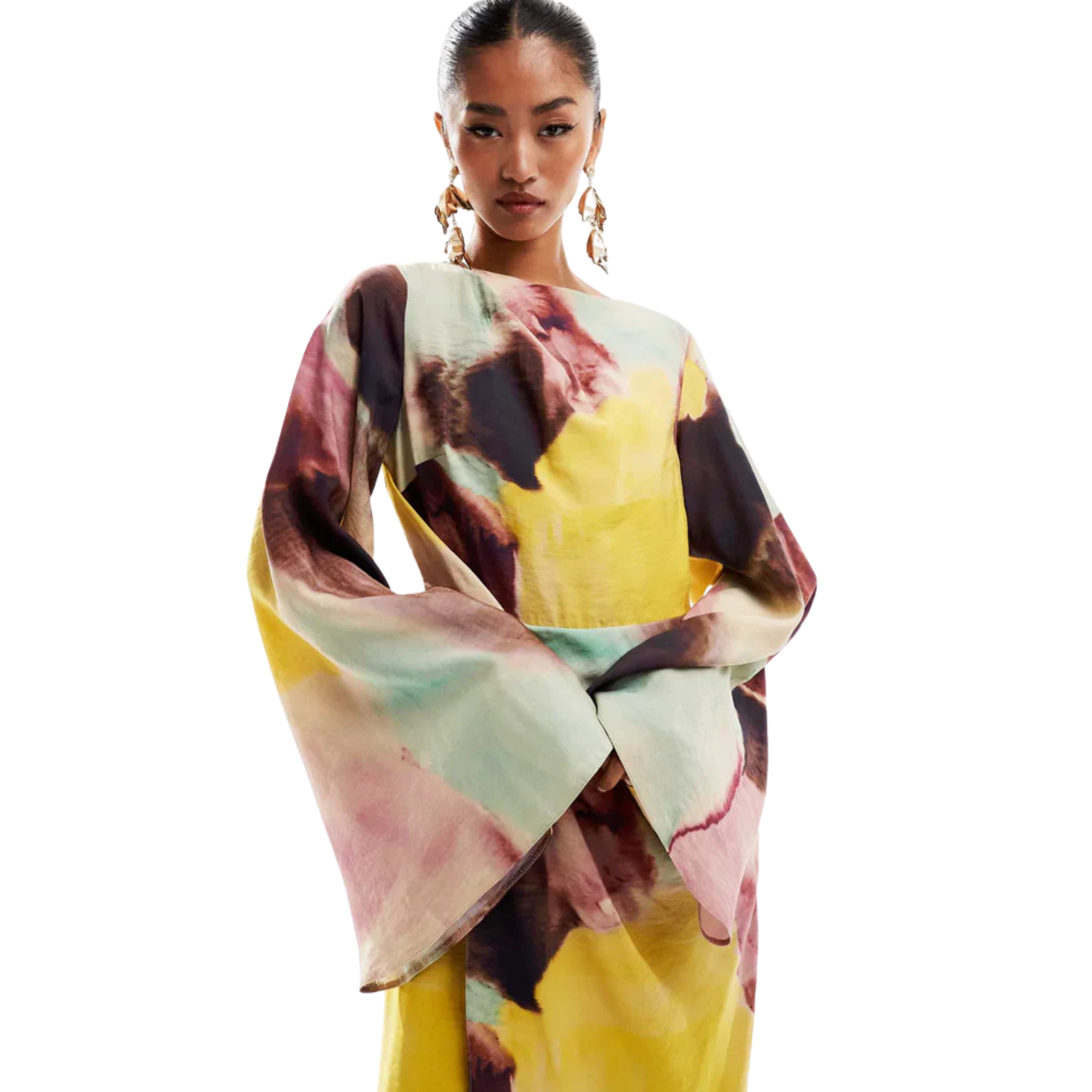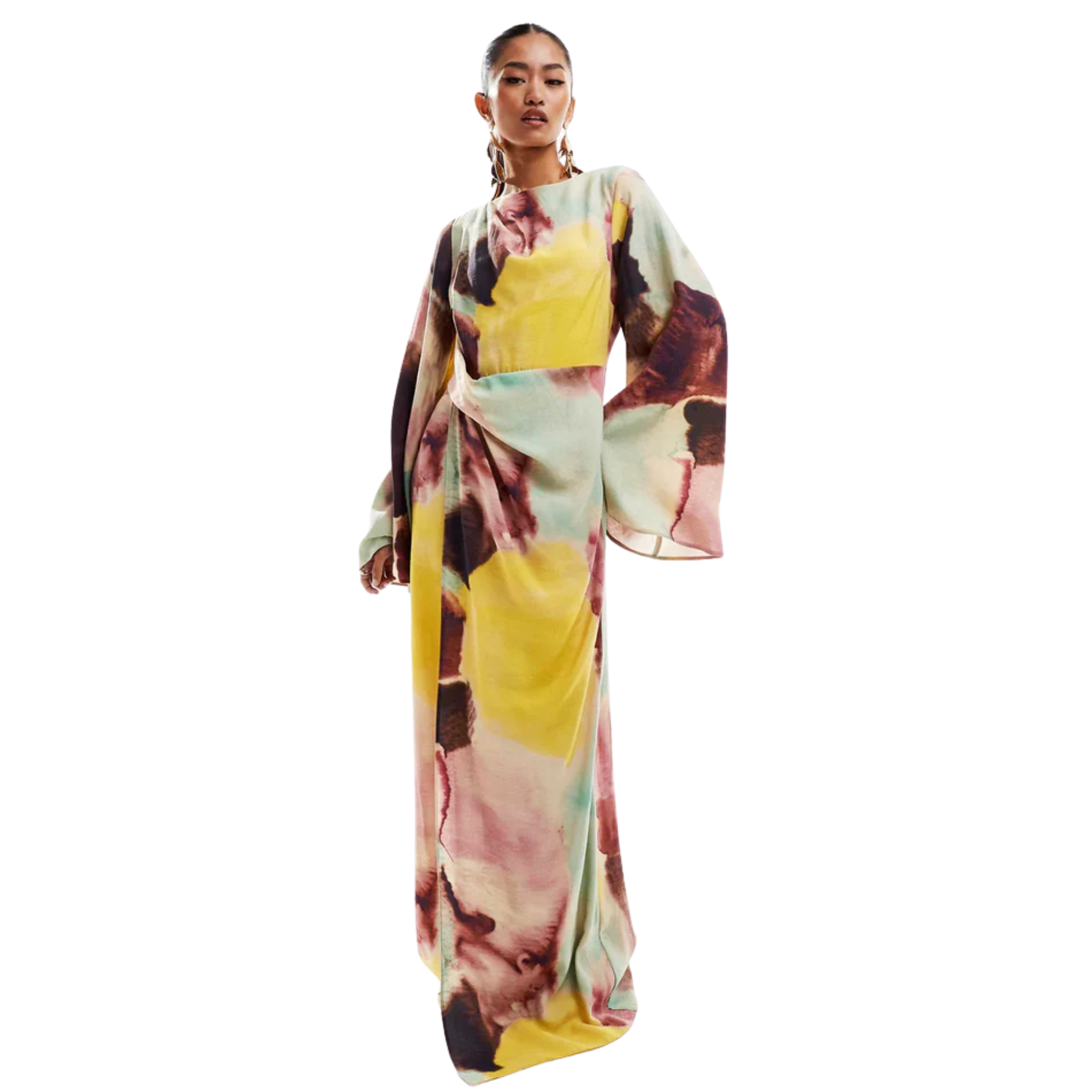 שמלת מקסי מודפס בצבעי מים אבסטרםקטיי