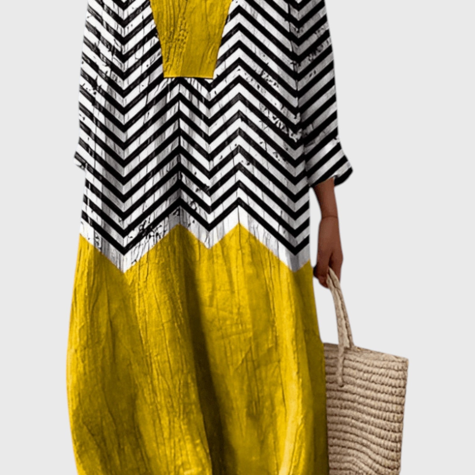 שמלת מקסי עם מחשוף V ופסים צבעוניים