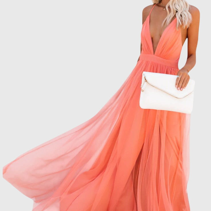 שמלת נאבה ארוכה פולימורפית עם גב פתוח ודמות רב-שימושית
