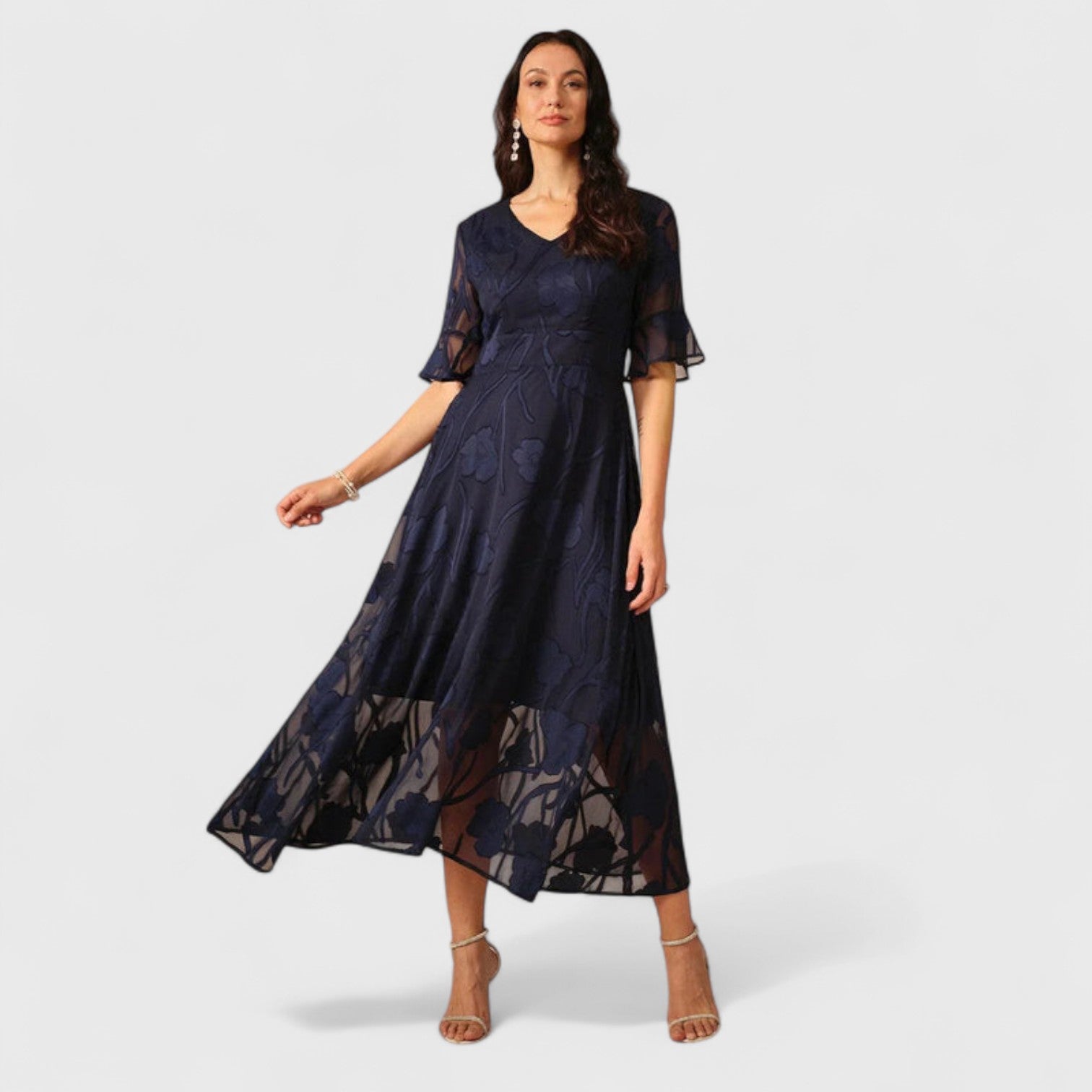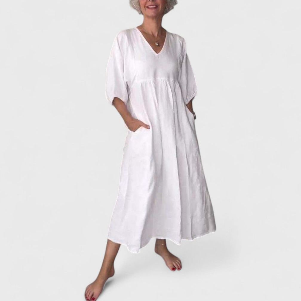שמלת מריה עם עיצוב צווארון V וקפלים