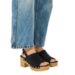 סנדלי עקב עם עיטורי ניטים, רצועה מתכווננת לעיצוב מושלם ונוחות מרבית. מתאימים ליום יום וליציאות