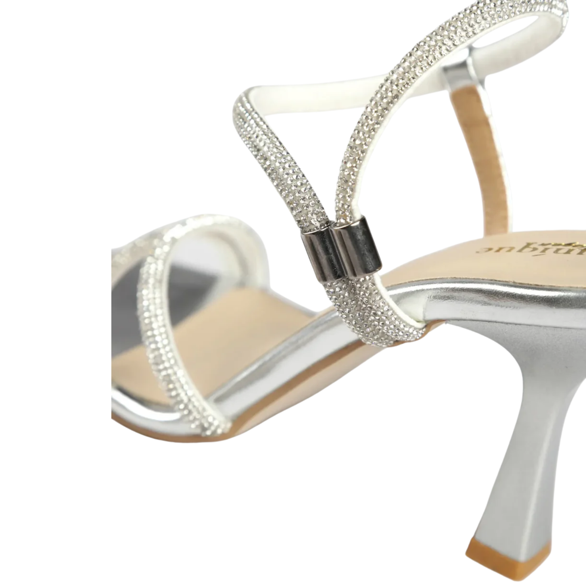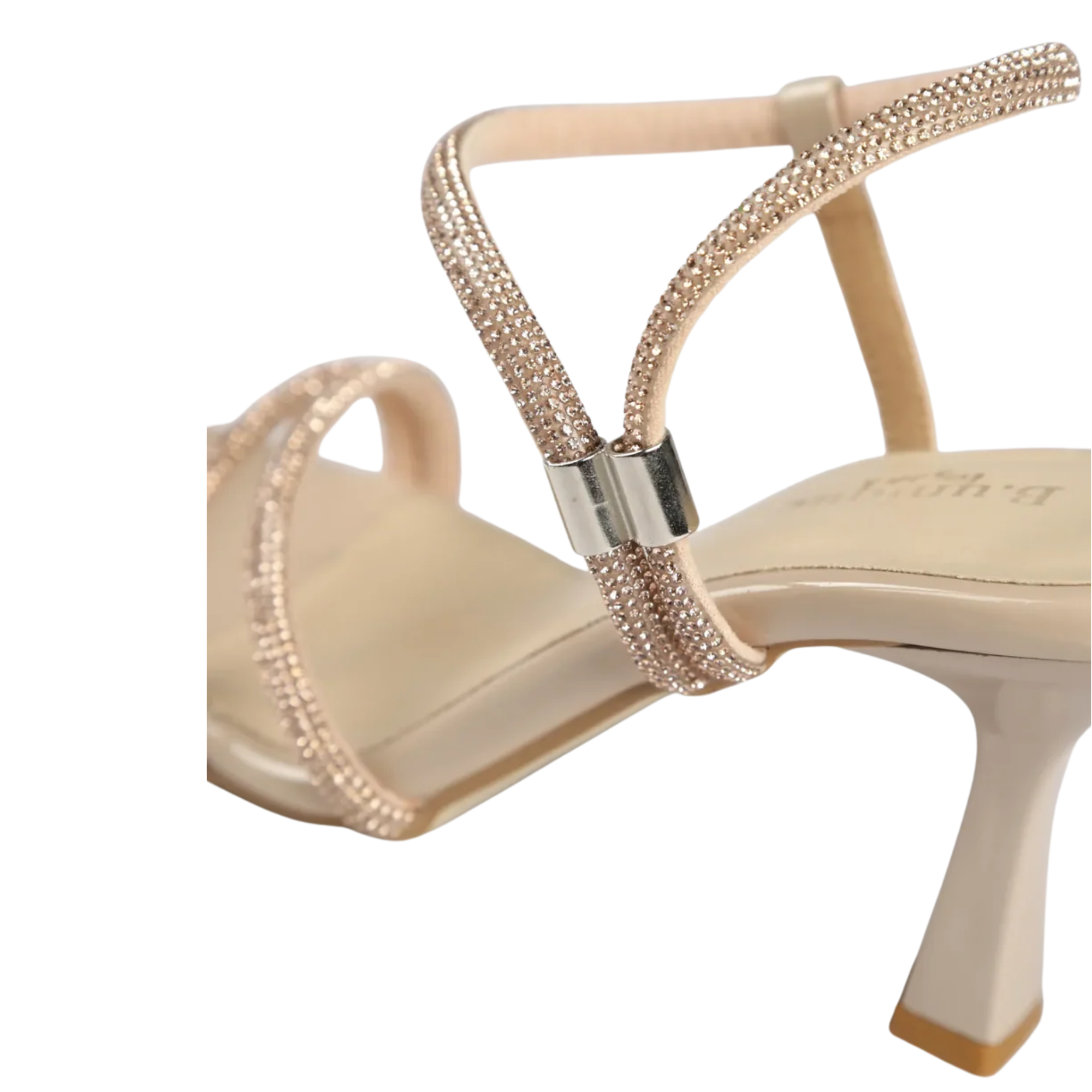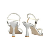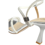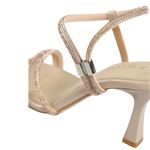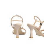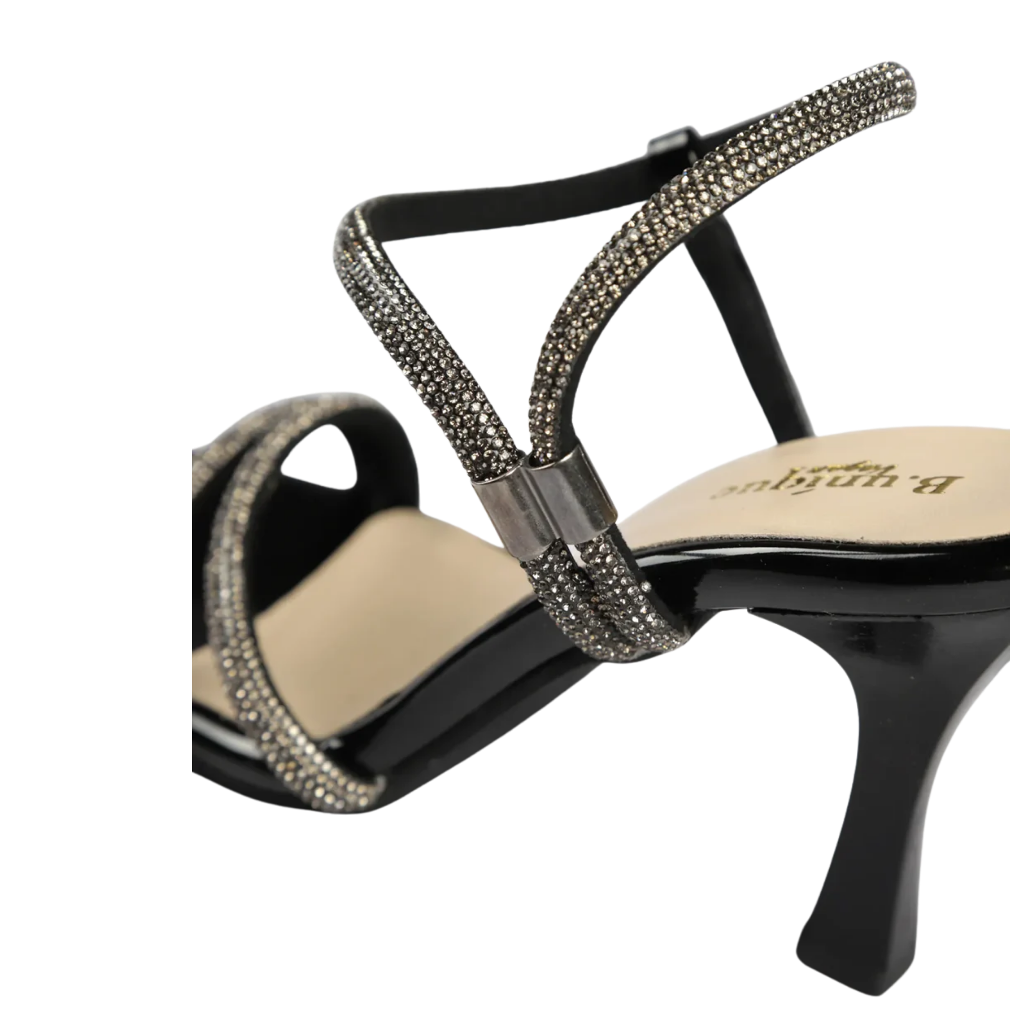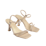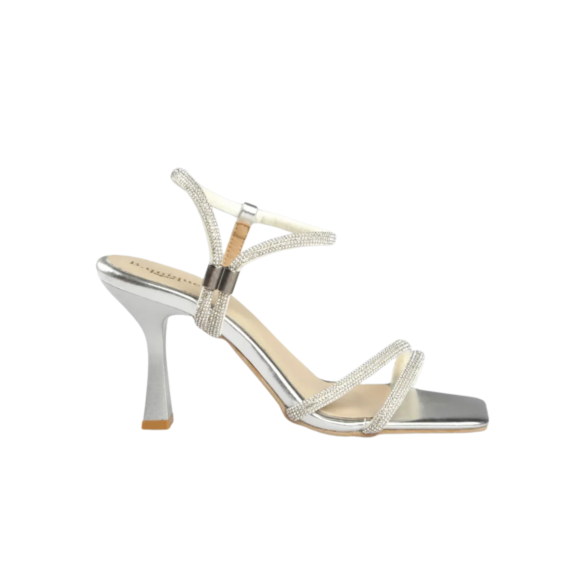 סנדלים שיקיים ואלגנטיים בעלי רצועות מעוגלות ועקב גבוה ונוח, יתאימו בול לשמלת ערב יוקרתית או אאוטפיט מוקפד למסיבה. עשויים חומר דמוי עור בשילוב אבנים