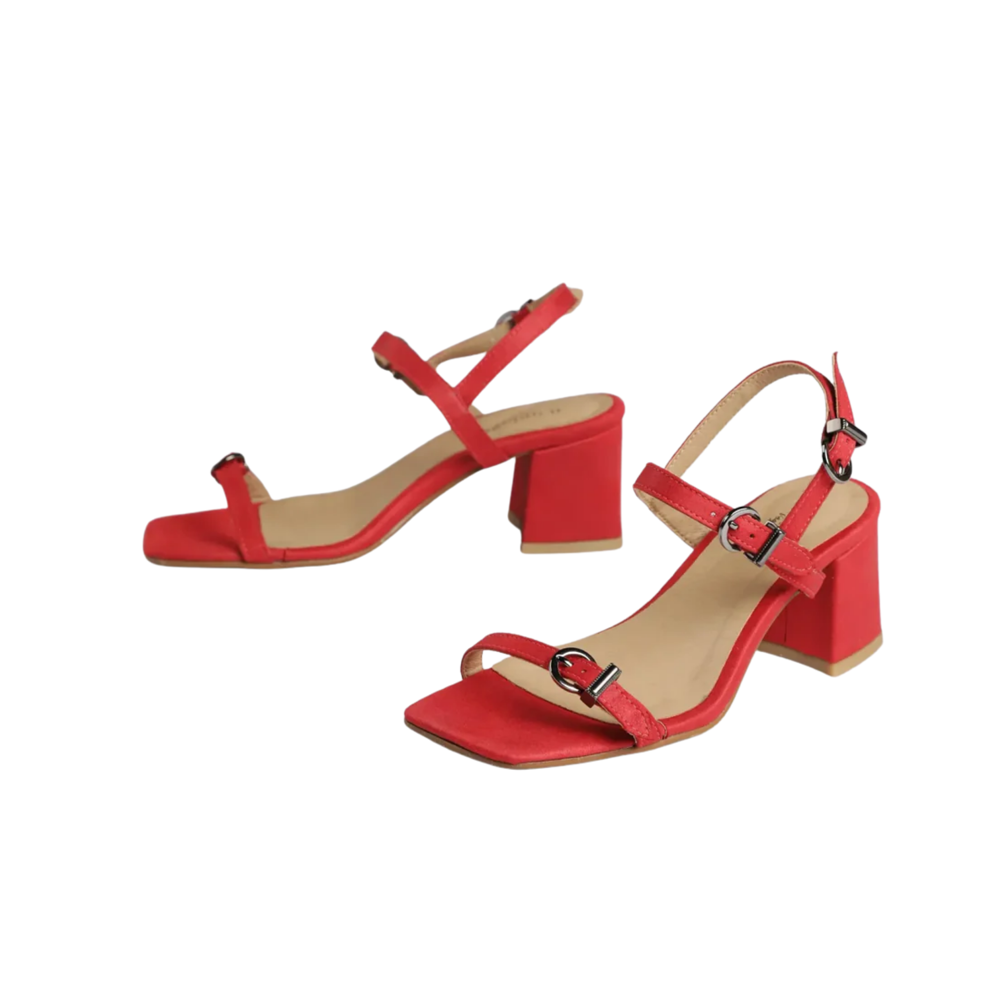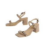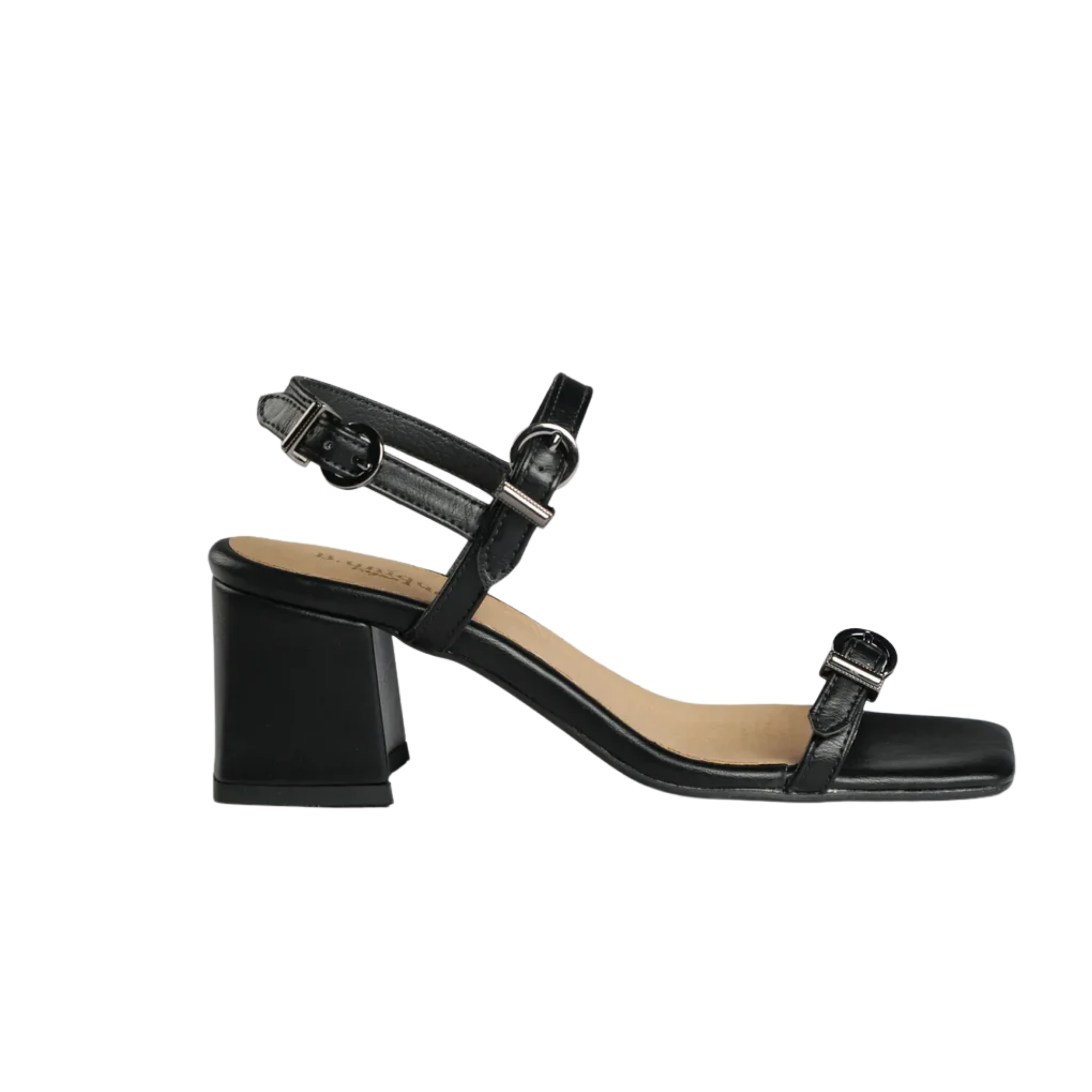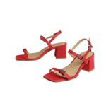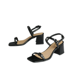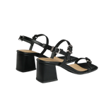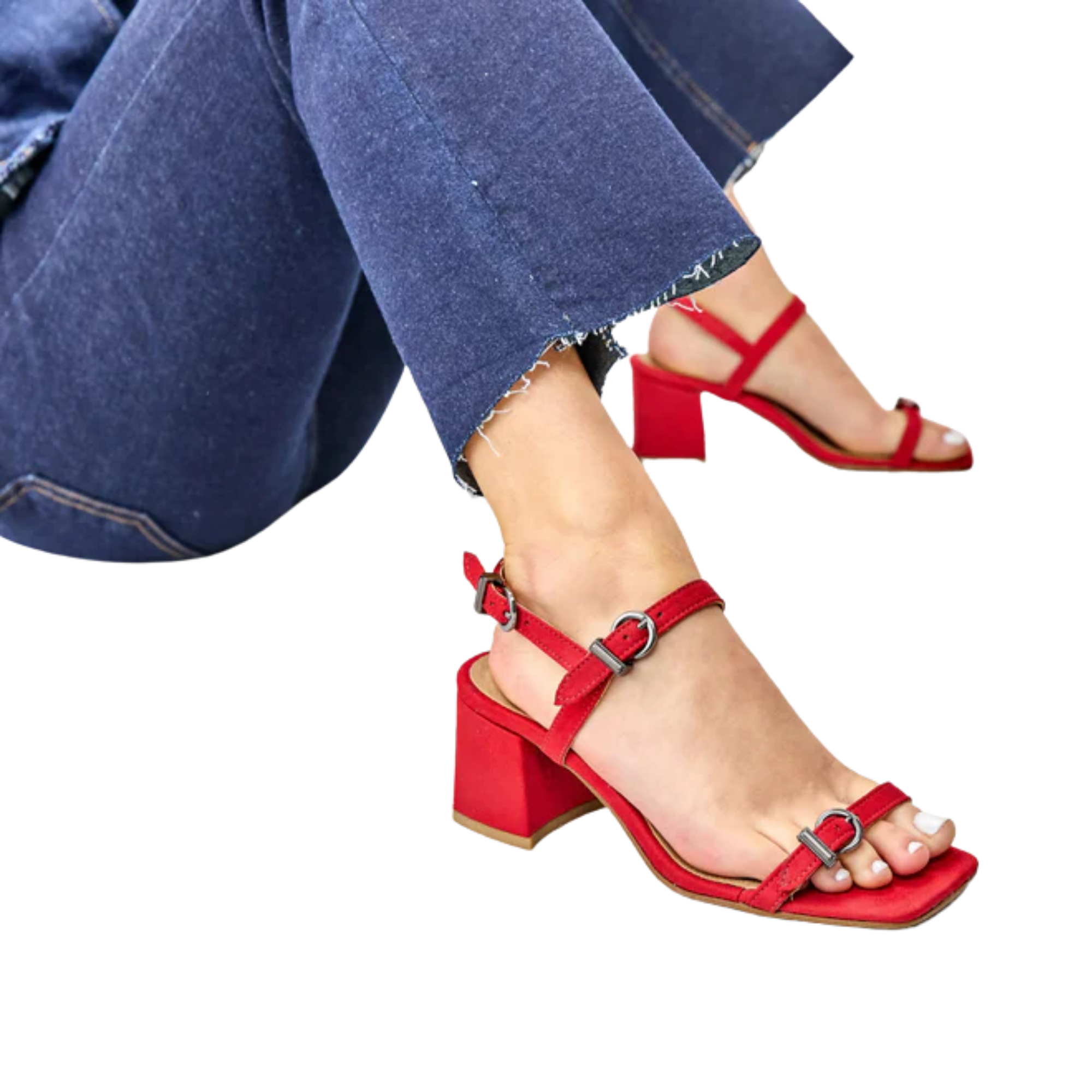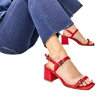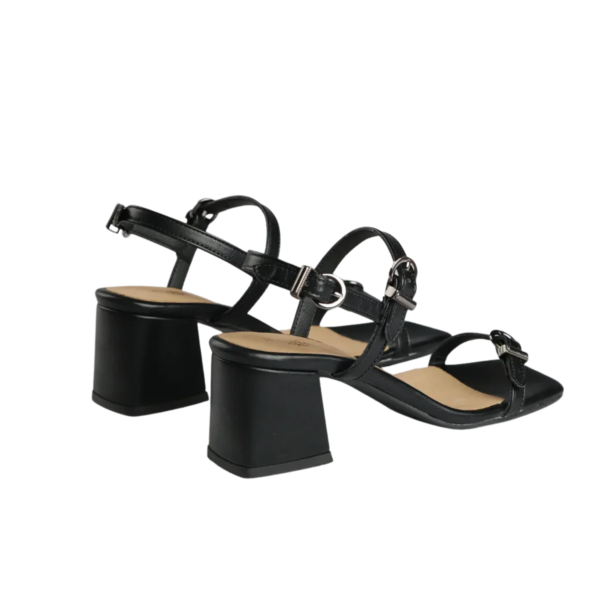 סנדלי עקב מדמוי עור איכותי, עם רצועות אבזם דקות במיוחד לעיצוב אלגנטי וקליל. שילוב מושלם של סטייל ונוחות.