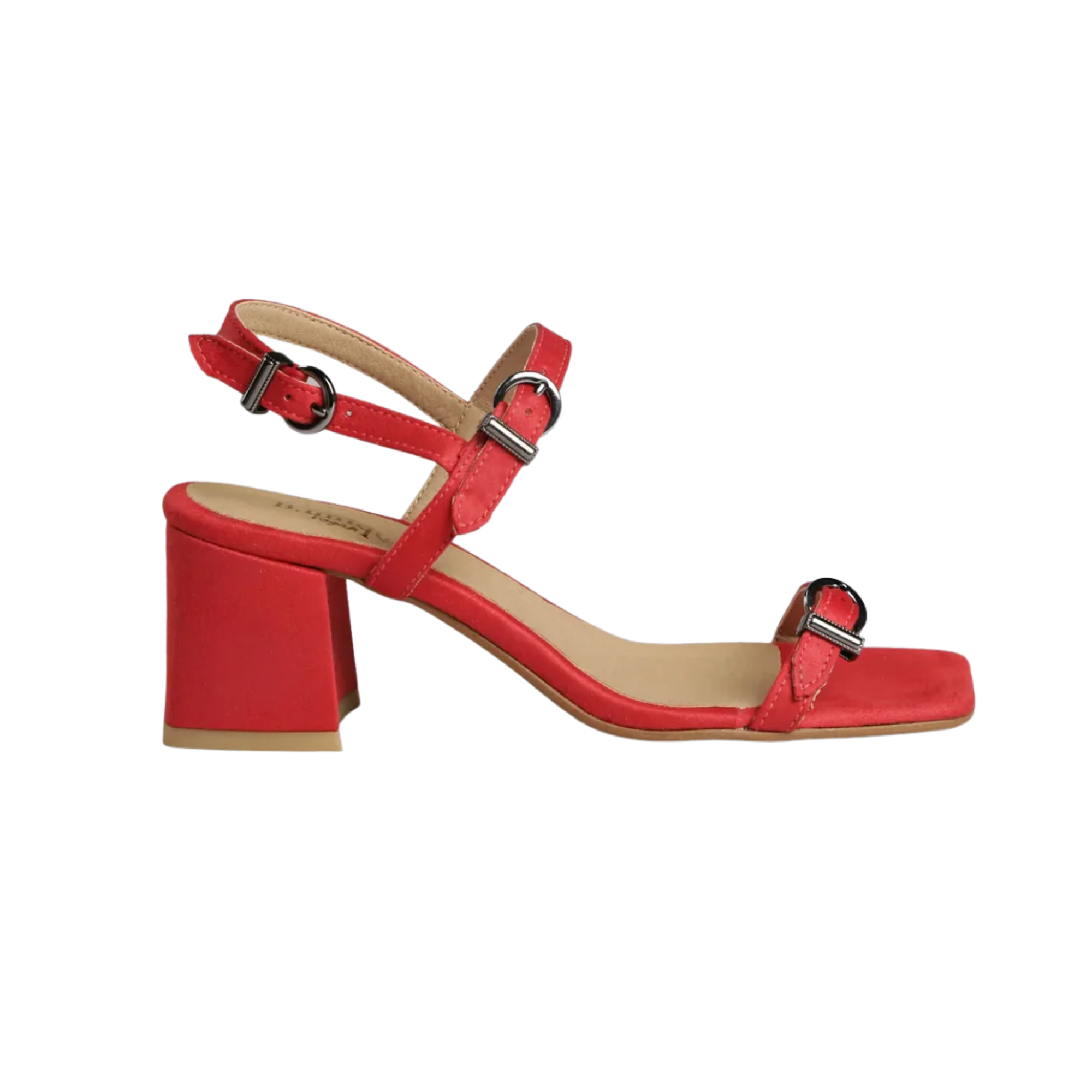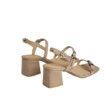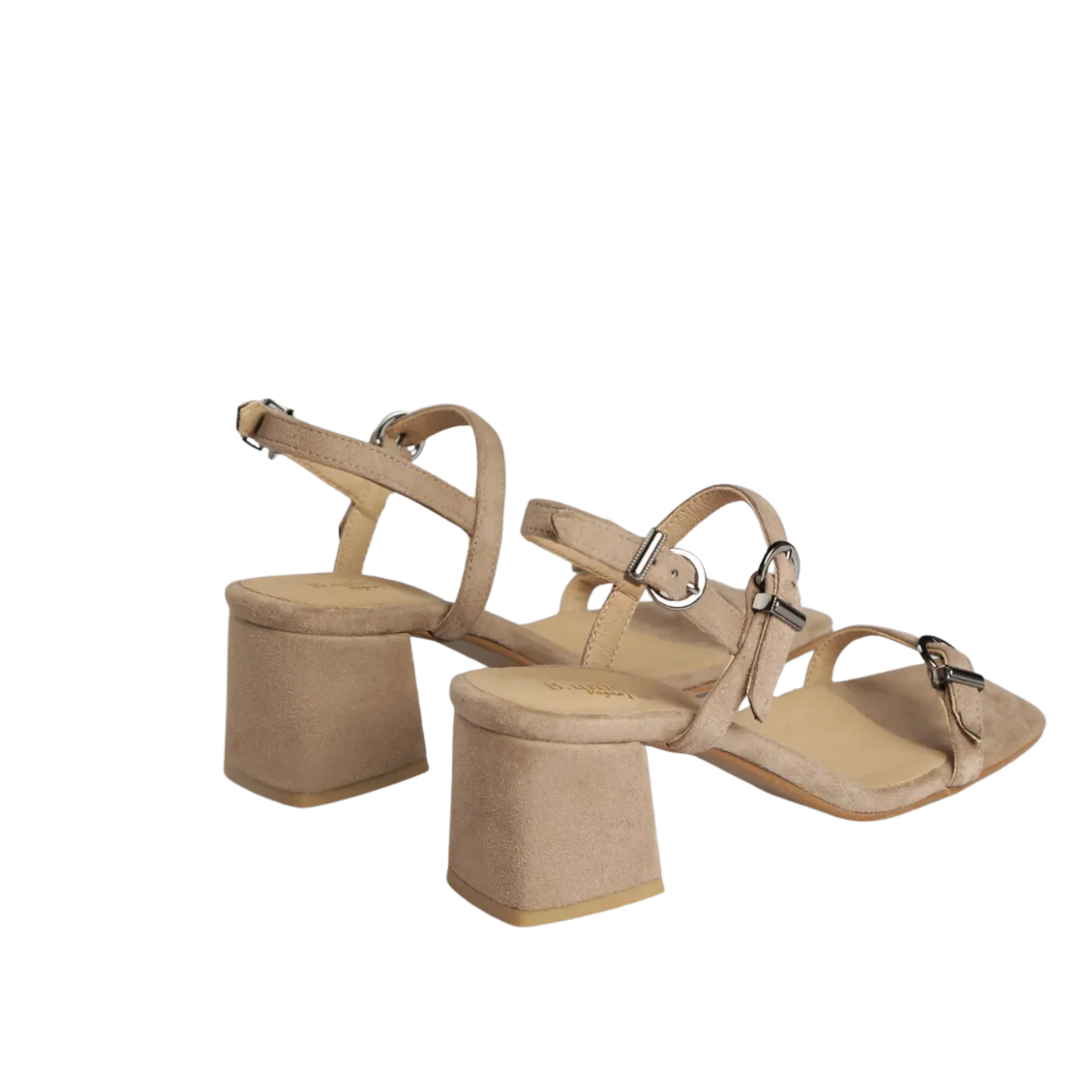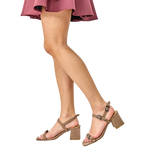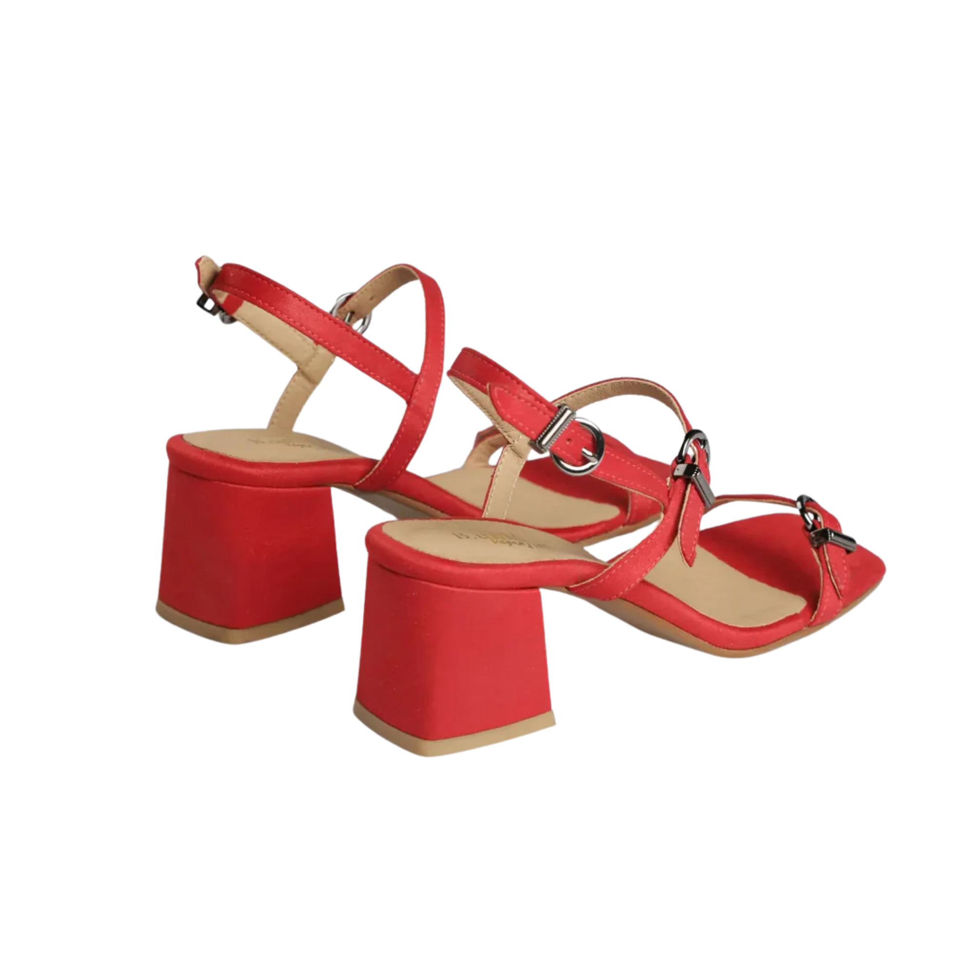 סנדלי עקב מדמוי עור איכותי, עם רצועות אבזם דקות במיוחד לעיצוב אלגנטי וקליל. שילוב מושלם של סטייל ונוחות.