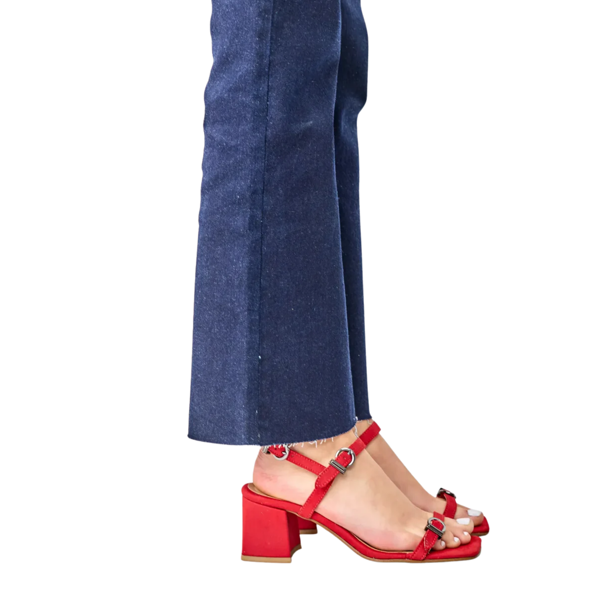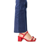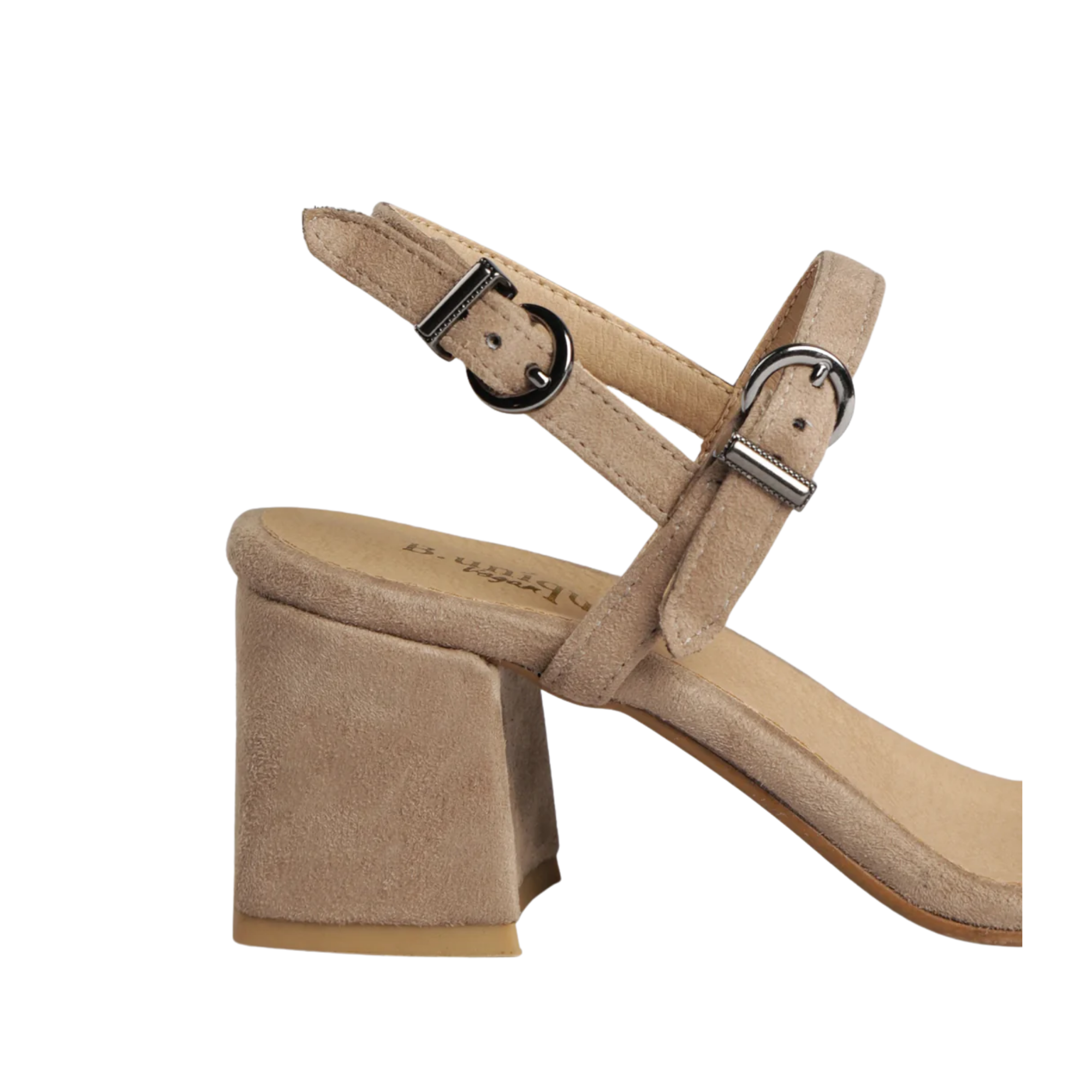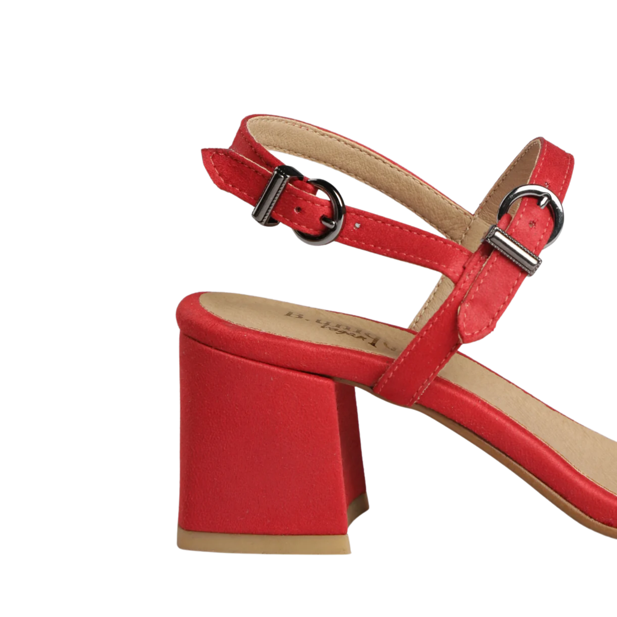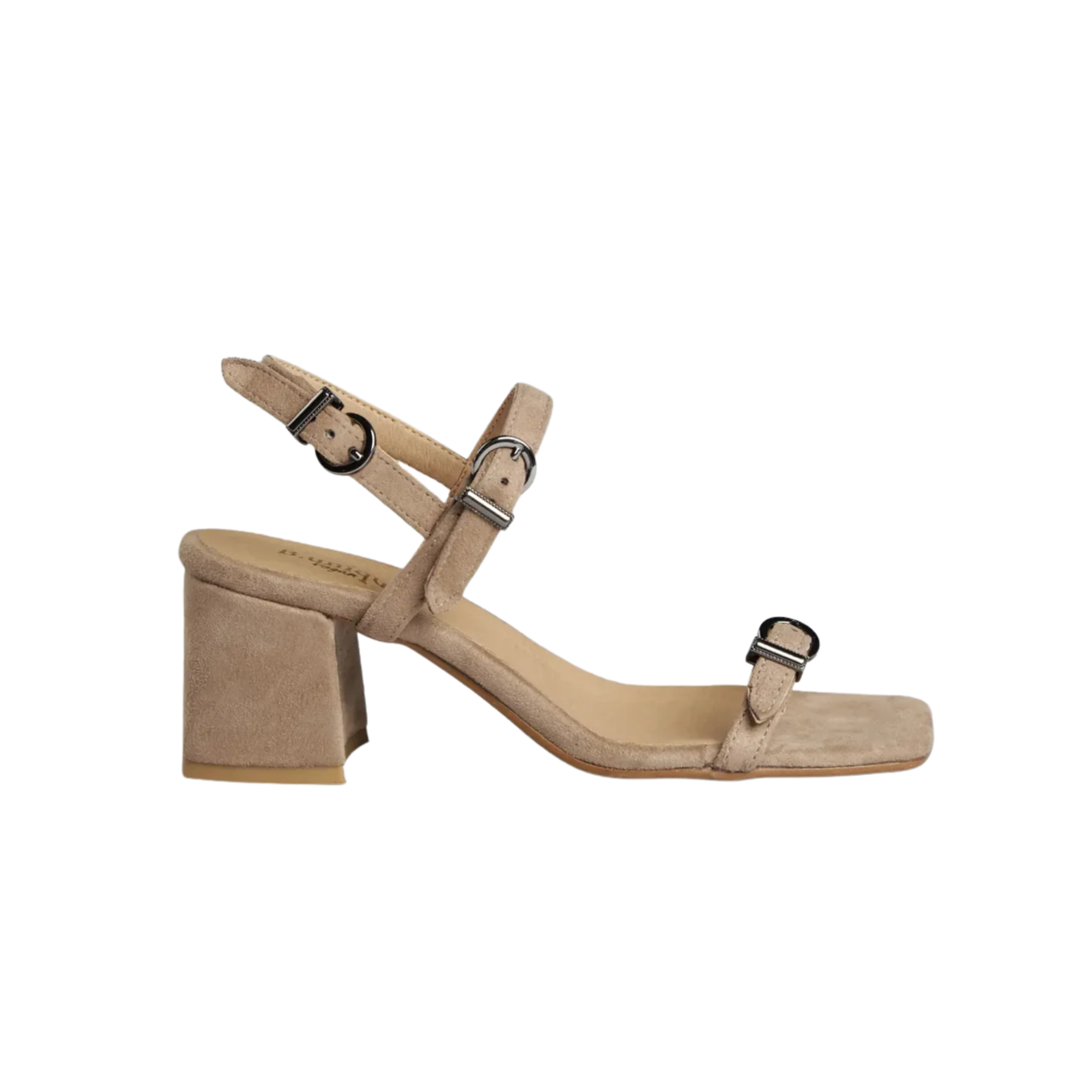 סנדלי עקב מדמוי עור איכותי, עם רצועות אבזם דקות במיוחד לעיצוב אלגנטי וקליל. שילוב מושלם של סטייל ונוחות.