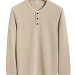 הסוודר בסגנון הנלי הזה מציע איזון נצחי בין פשטות קז'ואל לפרטים מעודנים. עם צווארון כפתורים וסילואט נקי, הוא אידיאלי לשכבות או ללבישה לבד — מושלם לסופי שבוע נינוחים, ערבים קרים או לבוש יומיומי.