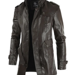 מעיל עור אופנוענים ארוך ואלגנטי