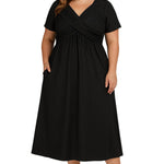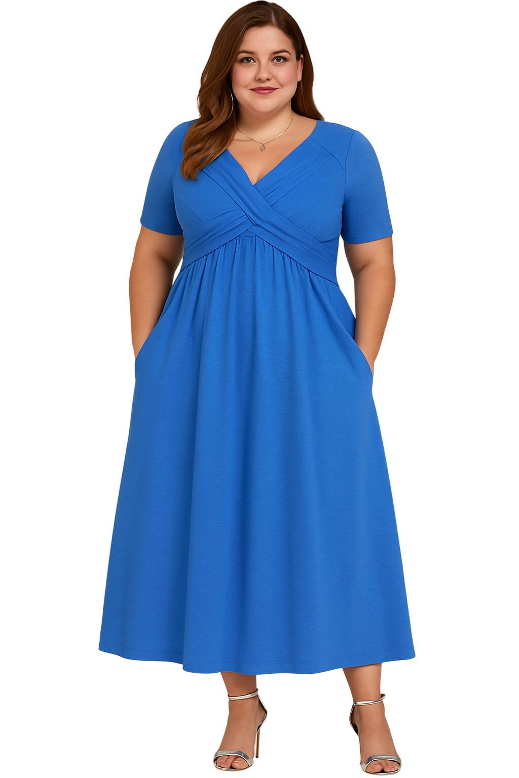 מילאנו | שמלת מידי עם צווארון V מקופלת עם שליטת בטן