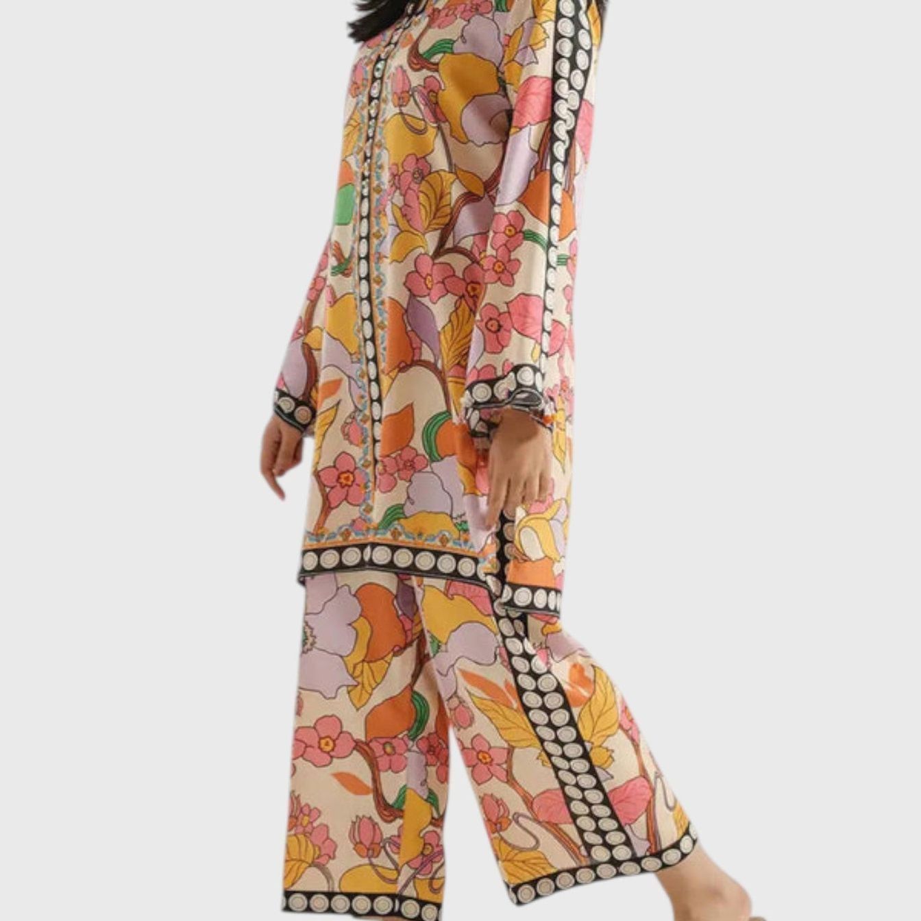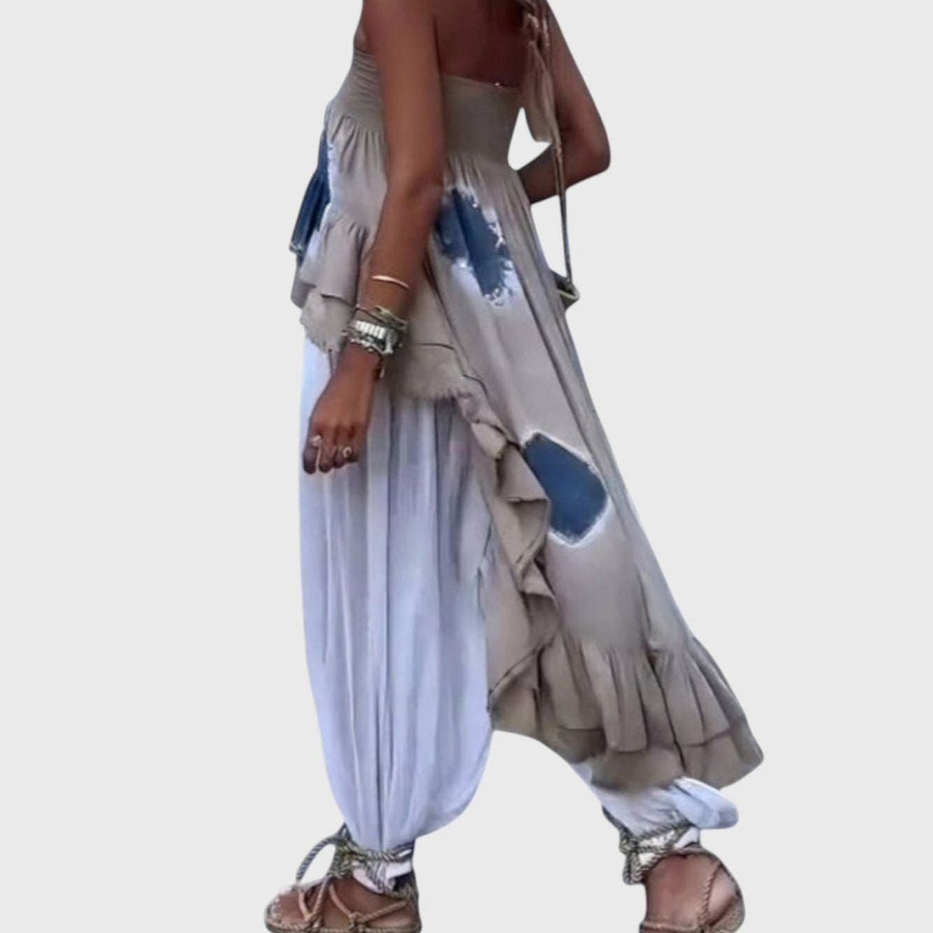מכנסי ירך רחבים עם הדפס אוקיינוס של יארה