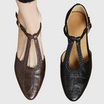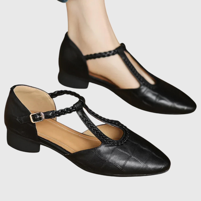 נעלי שטוח עם רצועת T שמשלבות מראה אלגנטי עם נוחות יומיומית. אידיאליות למראה מוקפד בעבודה או ליום נינוח בעיר.