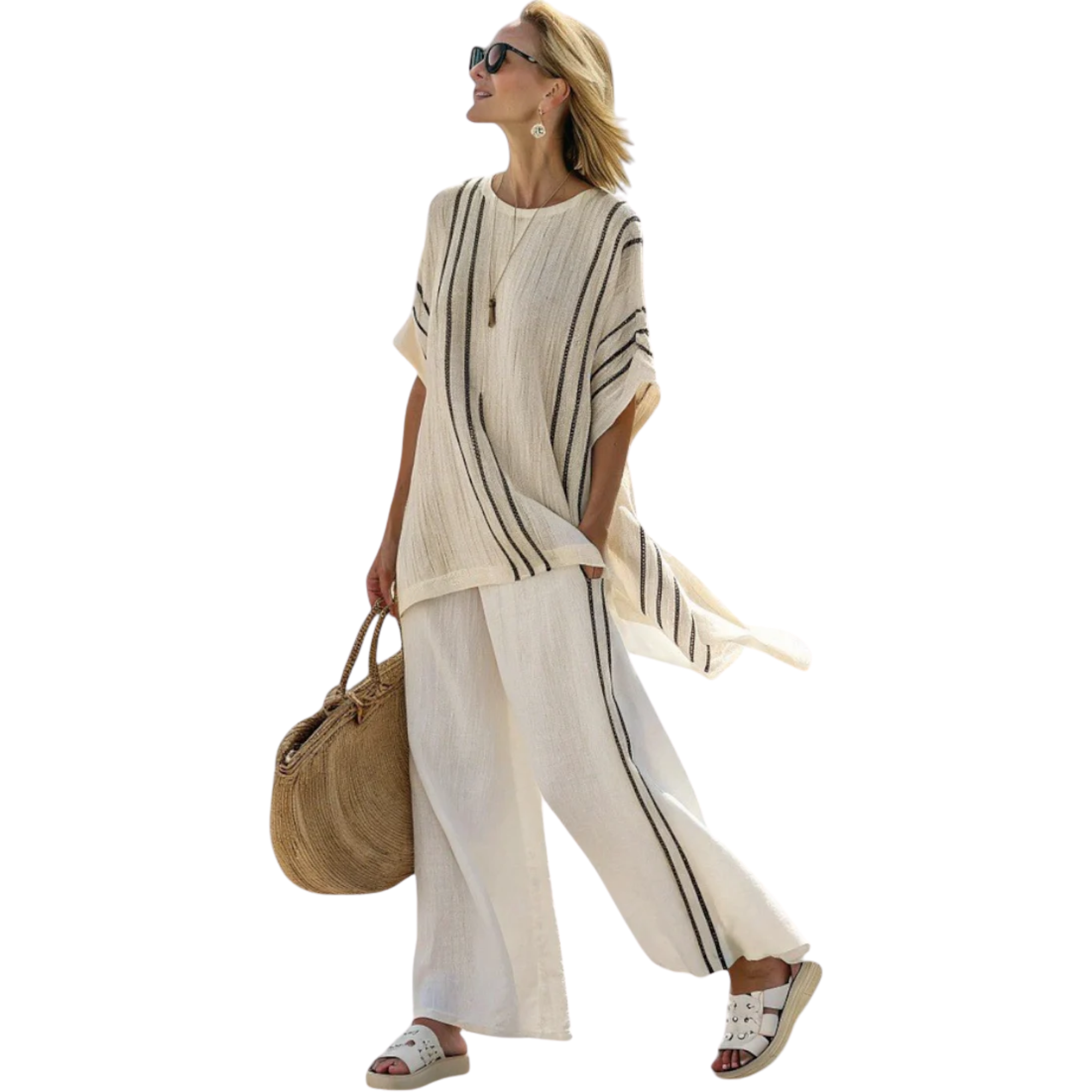 אמצו אלגנטיות ללא מאמץ עם סט פשתן בצבע שנהב – הלוק המושלם למראה רגוע בהשראת חופים.