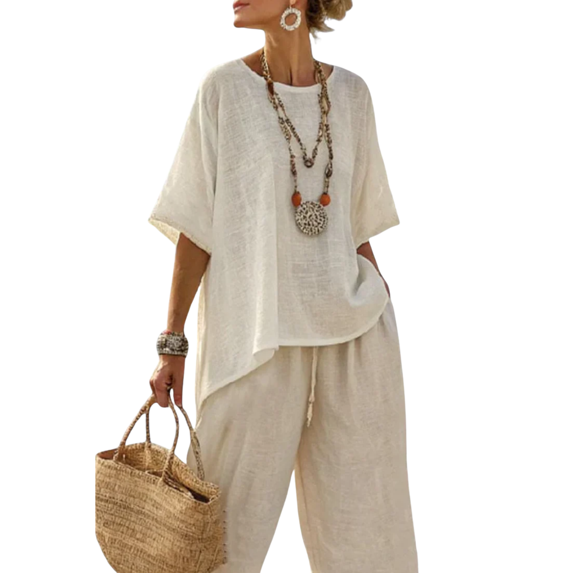 חוו סטייל ללא מאמץ ונוחות בלתי מתפשרת עם סט מינימליסטי דו־חלקי המיועד לנוחות יומיומית.