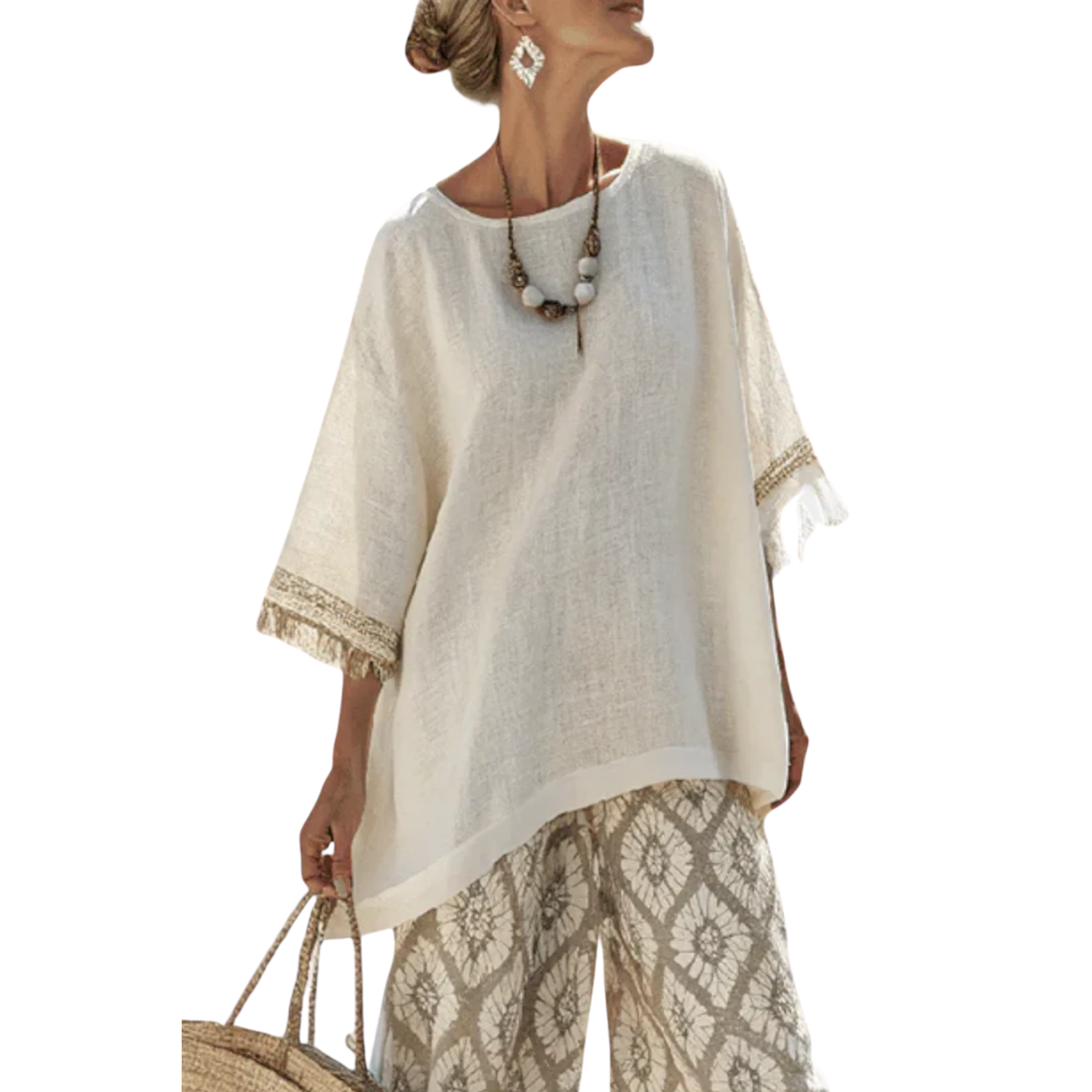 קצוות מעוצבים בעבודת יד – מוסיפים פרטים וטקסטורה אומנותית לחולצה הזרימה.