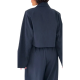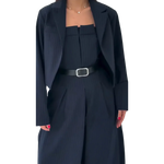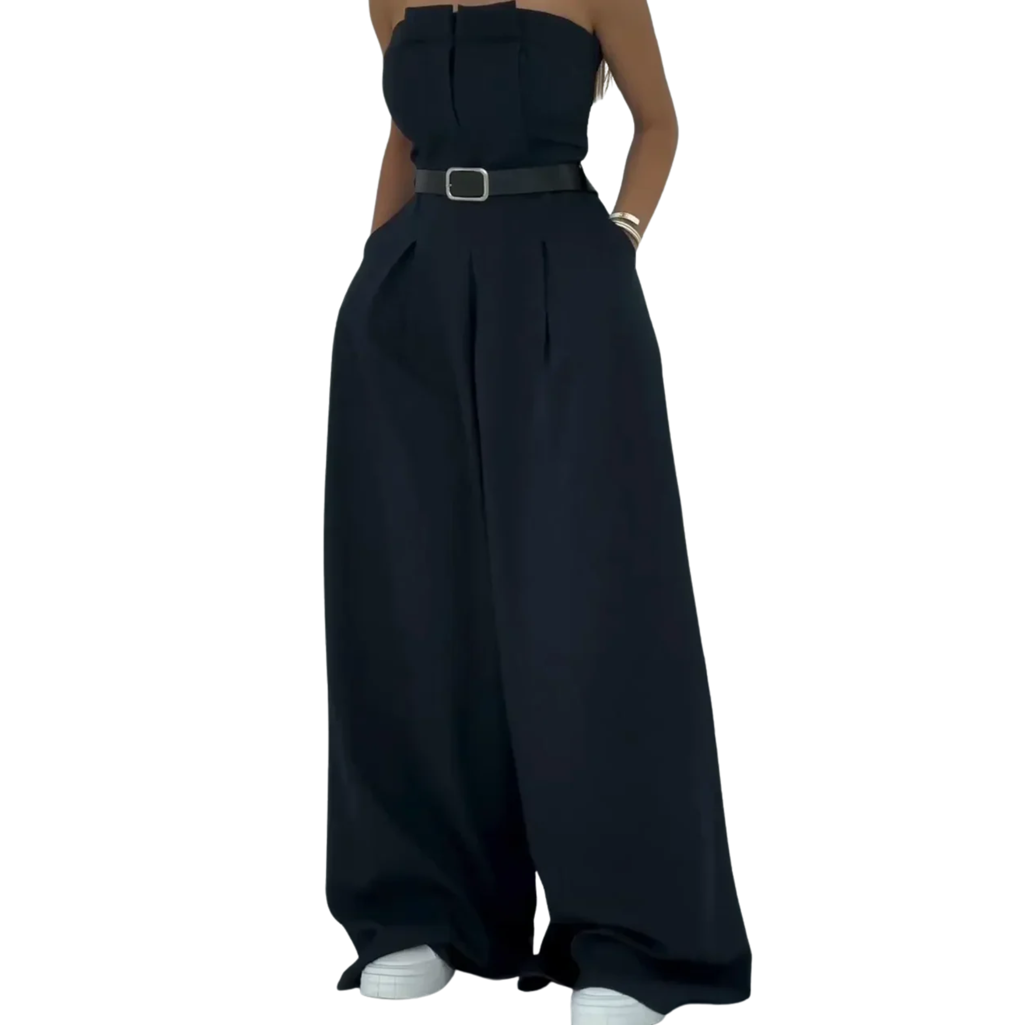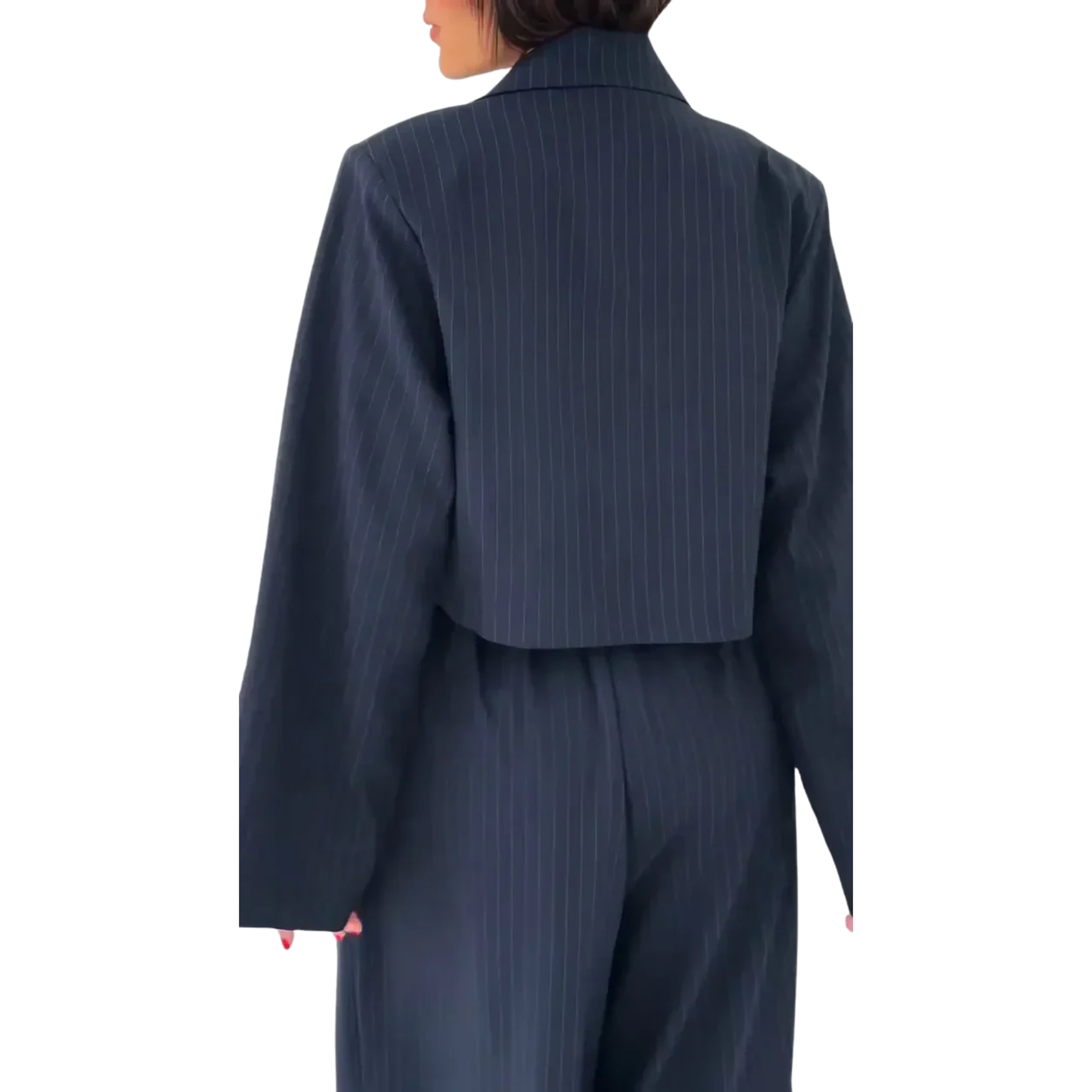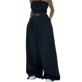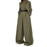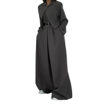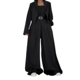 עיצוב אלגנטי ורב-שימושי – סט שני חלקים אופנתי הכולל בוסטייר מחויט, מכנסיים רחבים ובלייזר זורם, מושלם גם לעבודה וגם לאירועים מיוחדים.