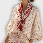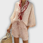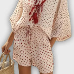 סט קיץ מנוקד עם מכנסיים קצרים וצעיף