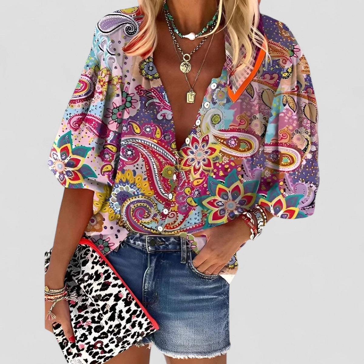 • דפוס ייחודי: עיצוב אבסטרקטי וצבעוני שמתאים למגוון תלבושות.
