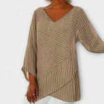 רעננו את הארון שלכם עם הפנלופה - טופ עם רצועות, פריט אלגנטי שנועד לימים נינוחים ולמראה יומיומי מתוחכם. עם הסילואטה הזורמת ודפוס הרצועות האלכסוניות, טופ זה מעניק למראה הקז'ואל שלכם נופך מעודן.