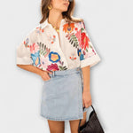 חולצת קרלה קצרה בוהמיינית בדוגמת פרחים