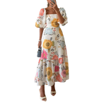 מרסלין שמלת מידי עם שרוולי פאפ ועליונית פרחונית