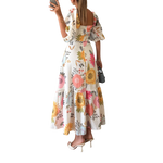 עשויה מתערובת כותנה קלה עם גימור רך ונושם, השמלה כוללת מחשוף מרובע מחמיא, שרוולי פאפ עם חפתים מכווצים, ואורך מידי שנופל באלגנטיות מתחת לברך. ההדפס הפרחוני התוסס בגוונים זוהרים מושלם למראה יום-לילה קלאסי ואלגנטי.