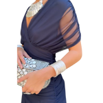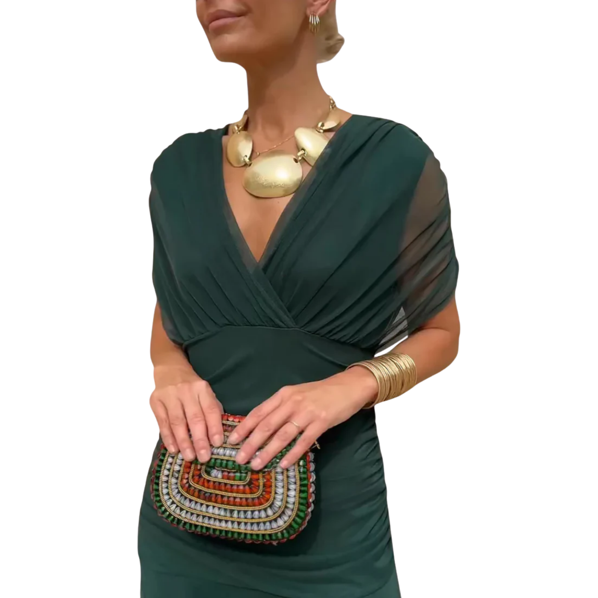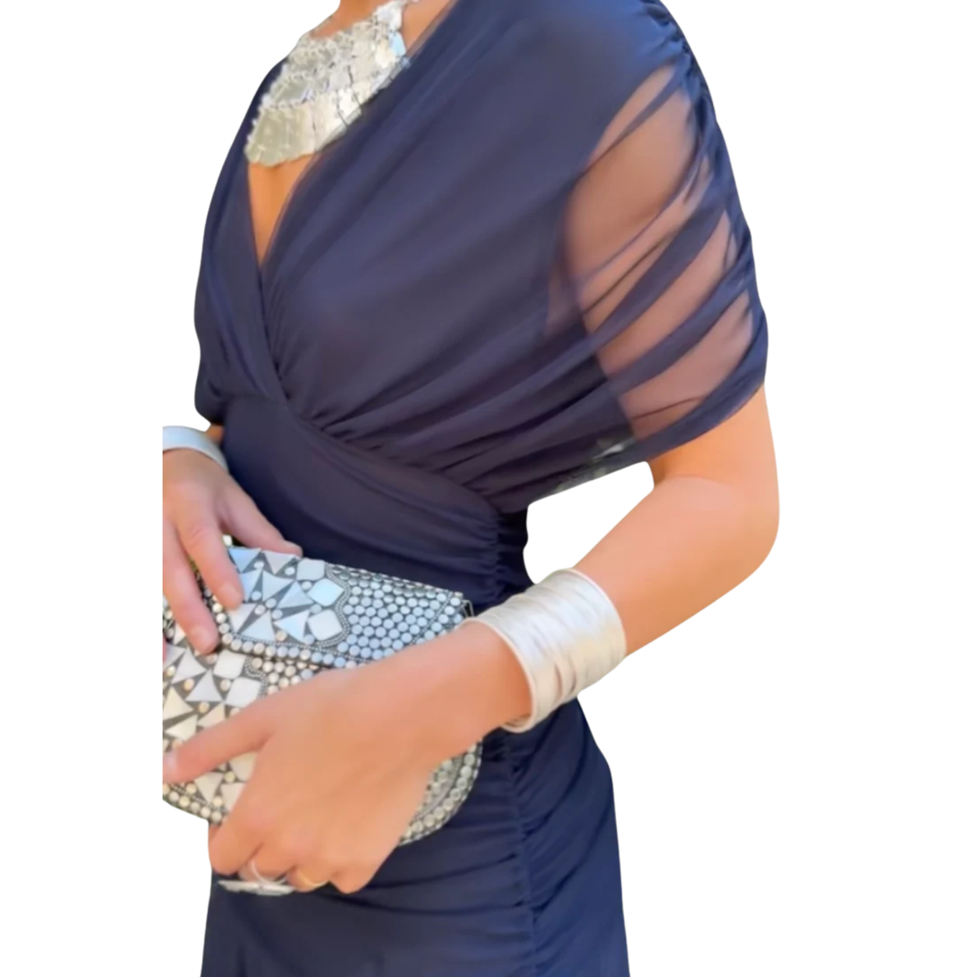 גזרה נשית ומחמיאה – עיצוב עם מחשוף V עדין ומותן פליסה שמדגישים את הסילואט באופן אלגנטי.