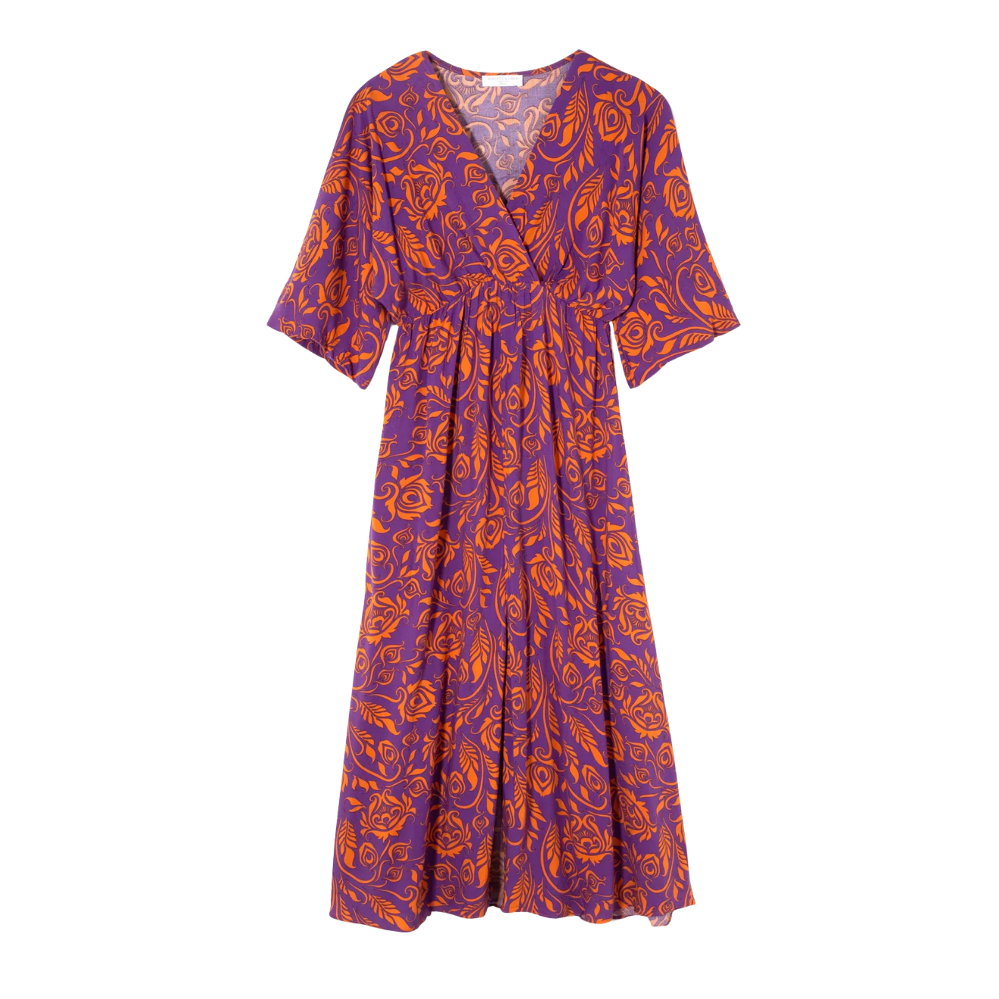 גזרה מחמיאה – מחשוף מעטפת, מותן אלסטית מתחת לחזה ושרוולי קימונו שיוצרים מראה נשי ואלגנטי.
