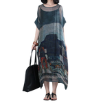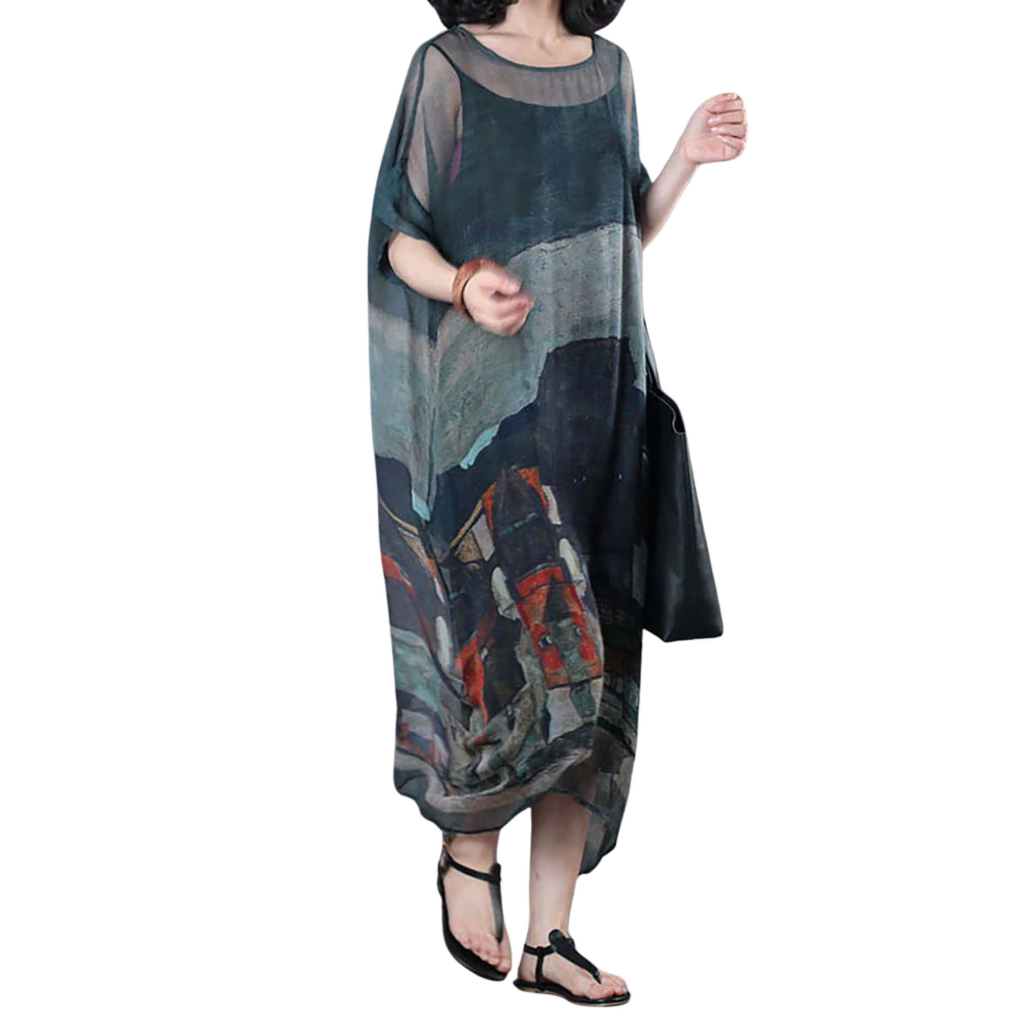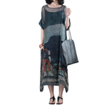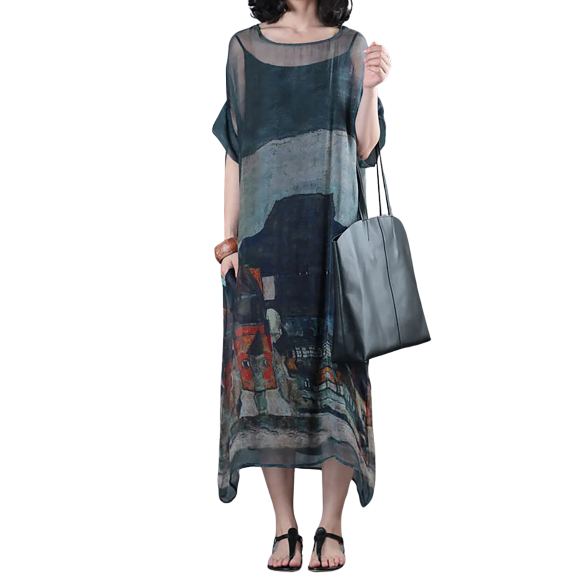 שמלת מקסי שקופה בהדפס קו רקיע עירוני