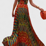 ג'ניס שמלת מקסי עם הדפס אמנותי וחשיפת חזה בסגנון הלטר