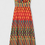 ההדפס הגיאומטרי שנצבע ביד מעניק לשמלה גוון אמנותי ומיוחד, כך שתוכלי להיות במרכז תשומת הלב בכל אירוע.