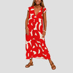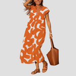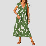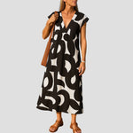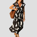 סילבינה – שמלת מקסי זורמת עם צווארון וי אלגנטי