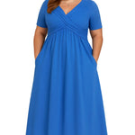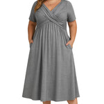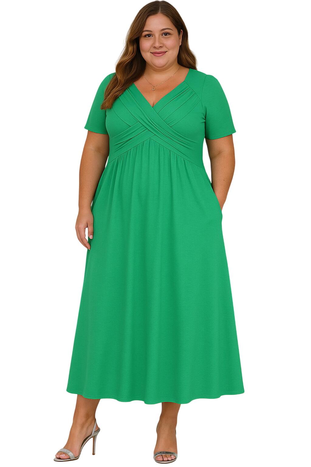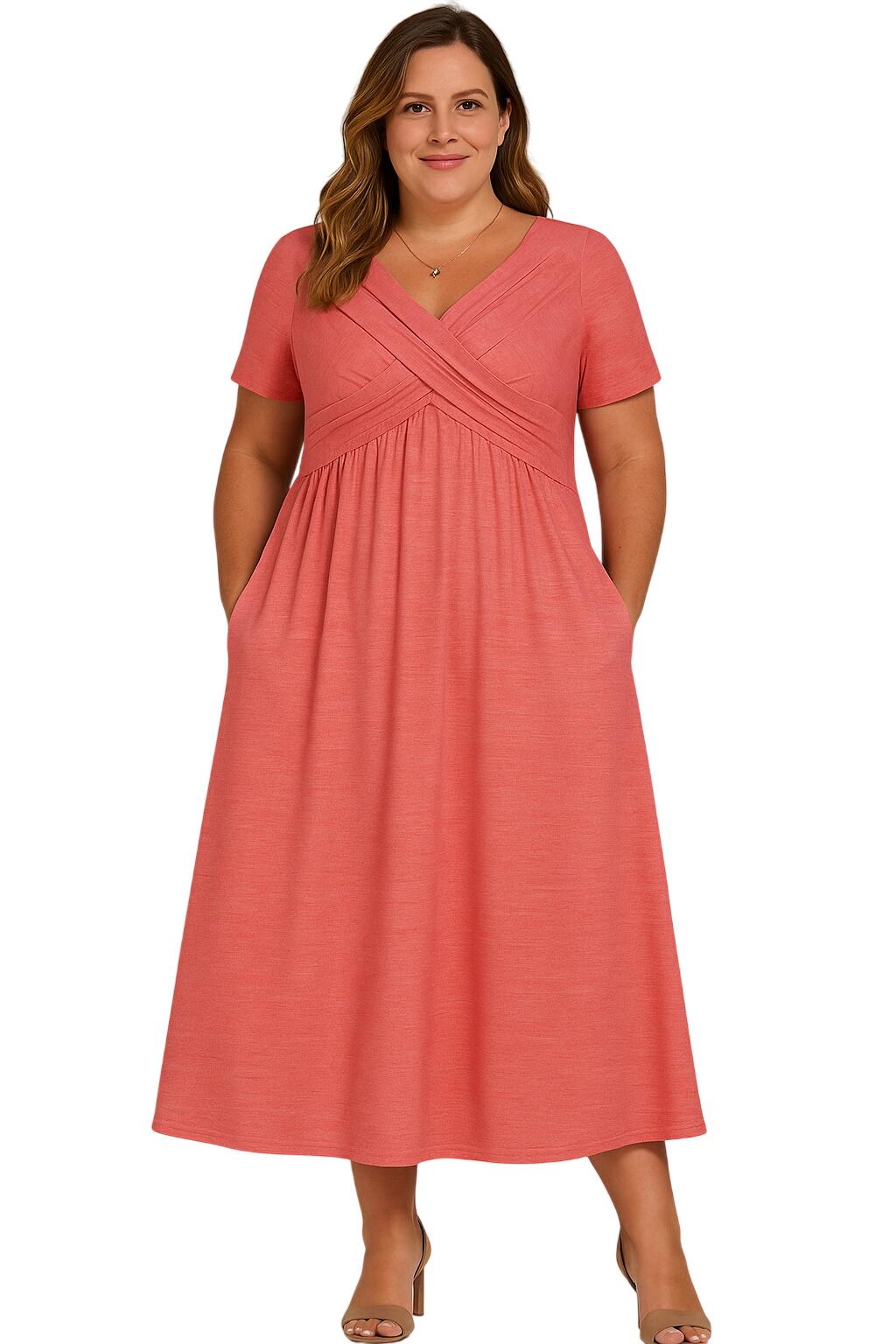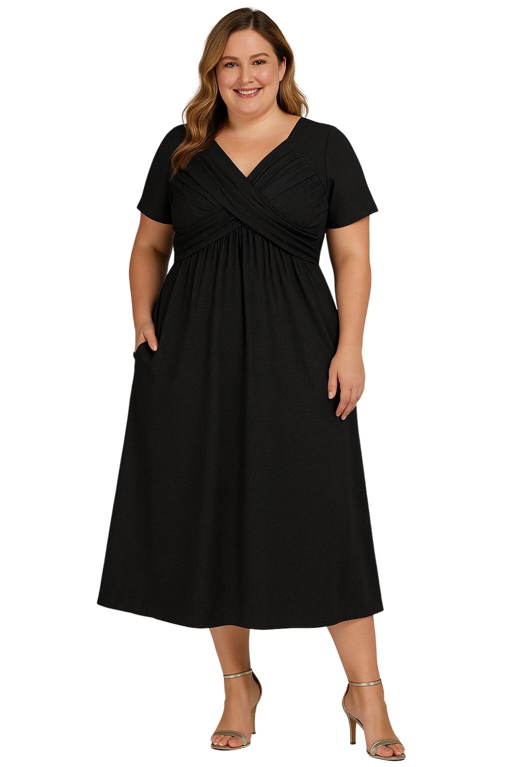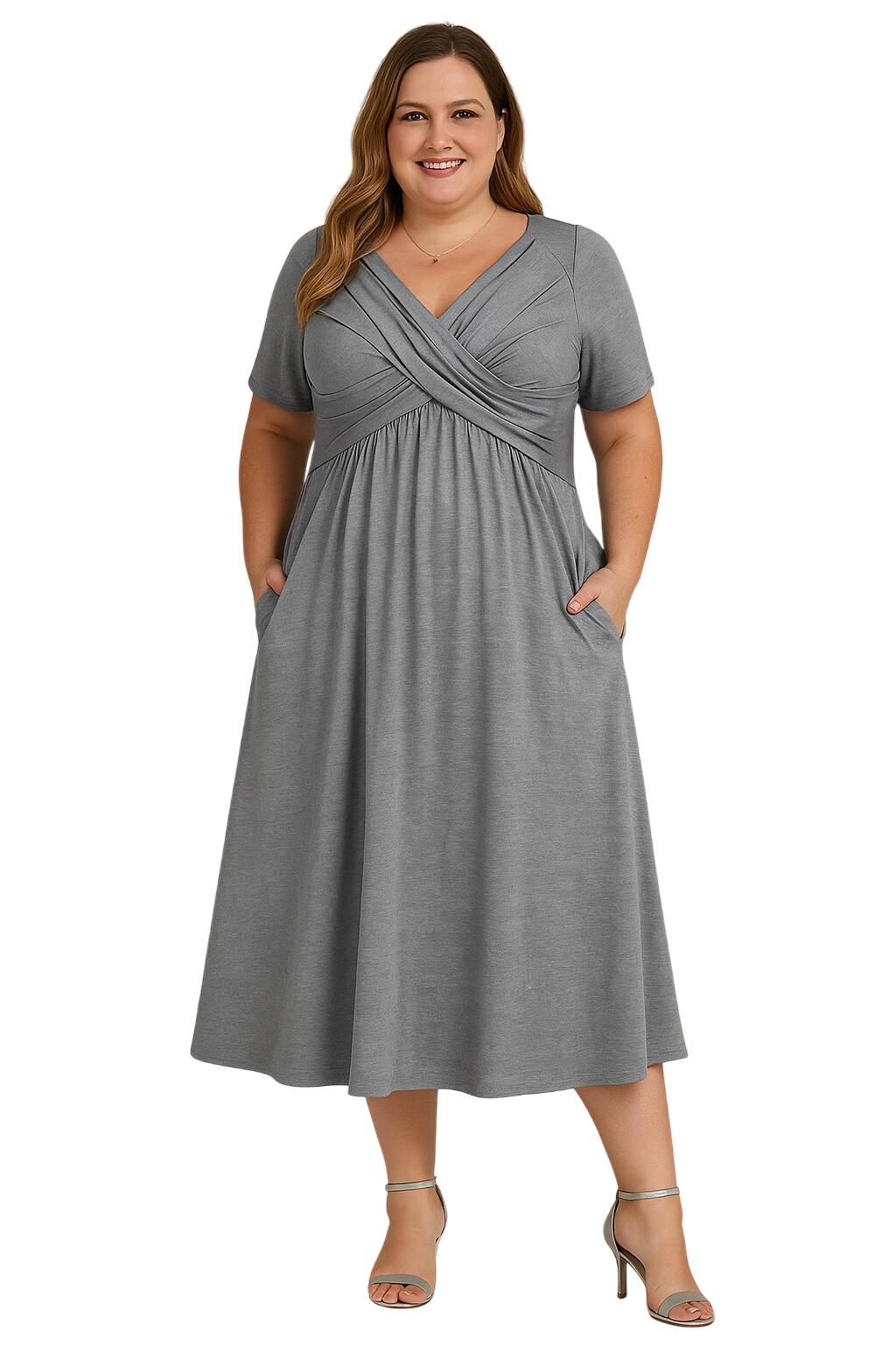מילאנו | שמלת מידי עם צווארון V מקופלת עם שליטת בטן