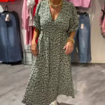 שדרגו את הארון שלכם עם שמלת קז'ואל אלגנטית זו, שעוצבה להרשים עם צווארון V וחצאית A-line. הסגנון המהודר שלה מתאים לכל אירוע בקלות. מושלמת ליציאות או מפגשים קז'ואליים.