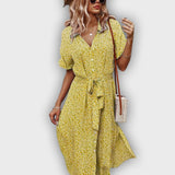 עם צווארון חולצה קלאסי ודוגמת פרחים מקסימה, השמלה הזו משלבת פונקציונליות מעשית עם אלגנטיות נשית. היא המלווה האידיאלית לכל אירוע.