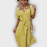 שמלת קיץ מידי קז'ואל עם מותן מתכווננת ועיצוב פרחים