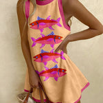 תשימי לב עם שמלת המיני אנבאה™ עם הדפס סרדינים — נגיעה משחקית בסגנון המינימליסטי. הדוגמה הייחודית שלה עם הסרדינים והסילואטה האווירית הופכים אותה לפריט המושלם לימים בחוף הים, טיולים בשוק או יציאות לא פורמליות. שילבי אותה עם סנדלים נמוכים ותיק קלוע לסגנון קיץ ייחודי וללא מאמץ.