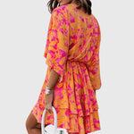 השרוולים הרפויים בסגנון קימונו מעניקים לשמלה מראה נינוח, אך עדיין אלגנטי, שמתאים לכל הזדמנות.